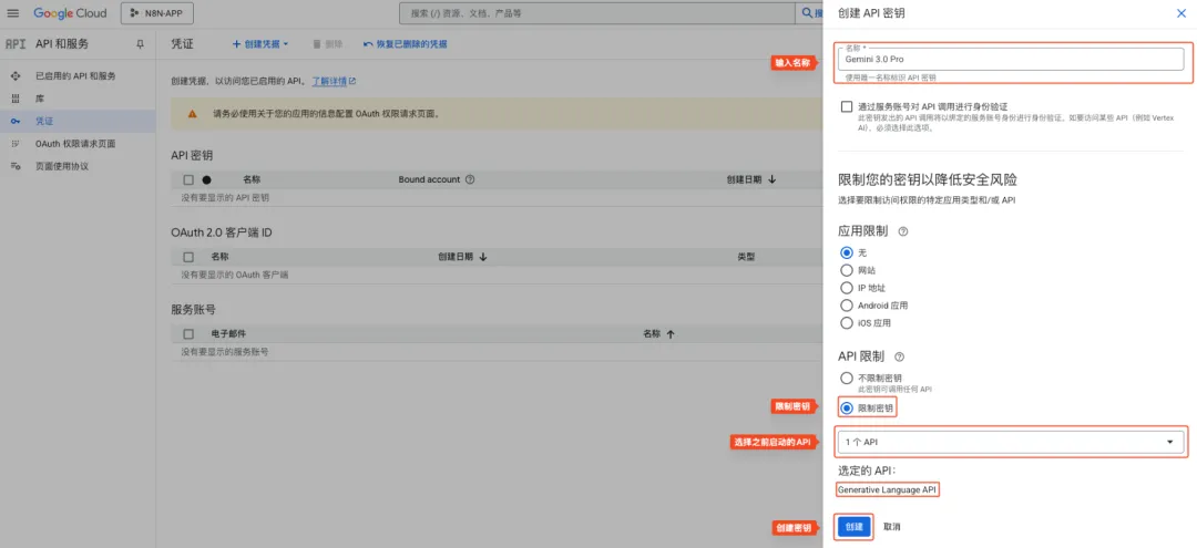 我们后续创建的API和OAuth认证,都要在同一个项目下。