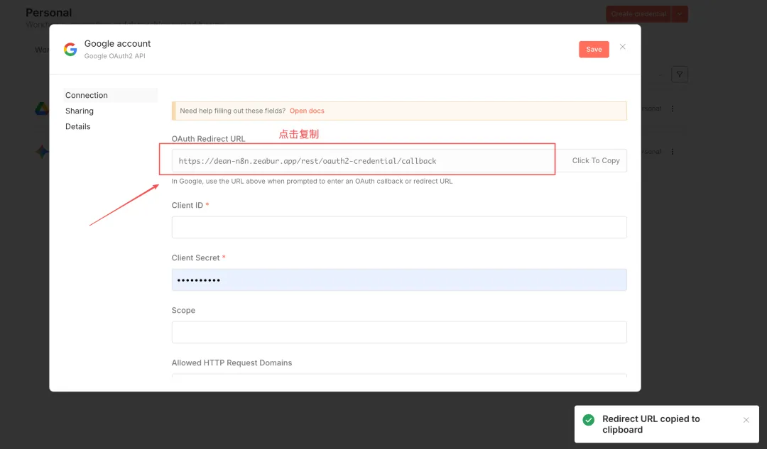 Step 3:在N8N上完成鉴权