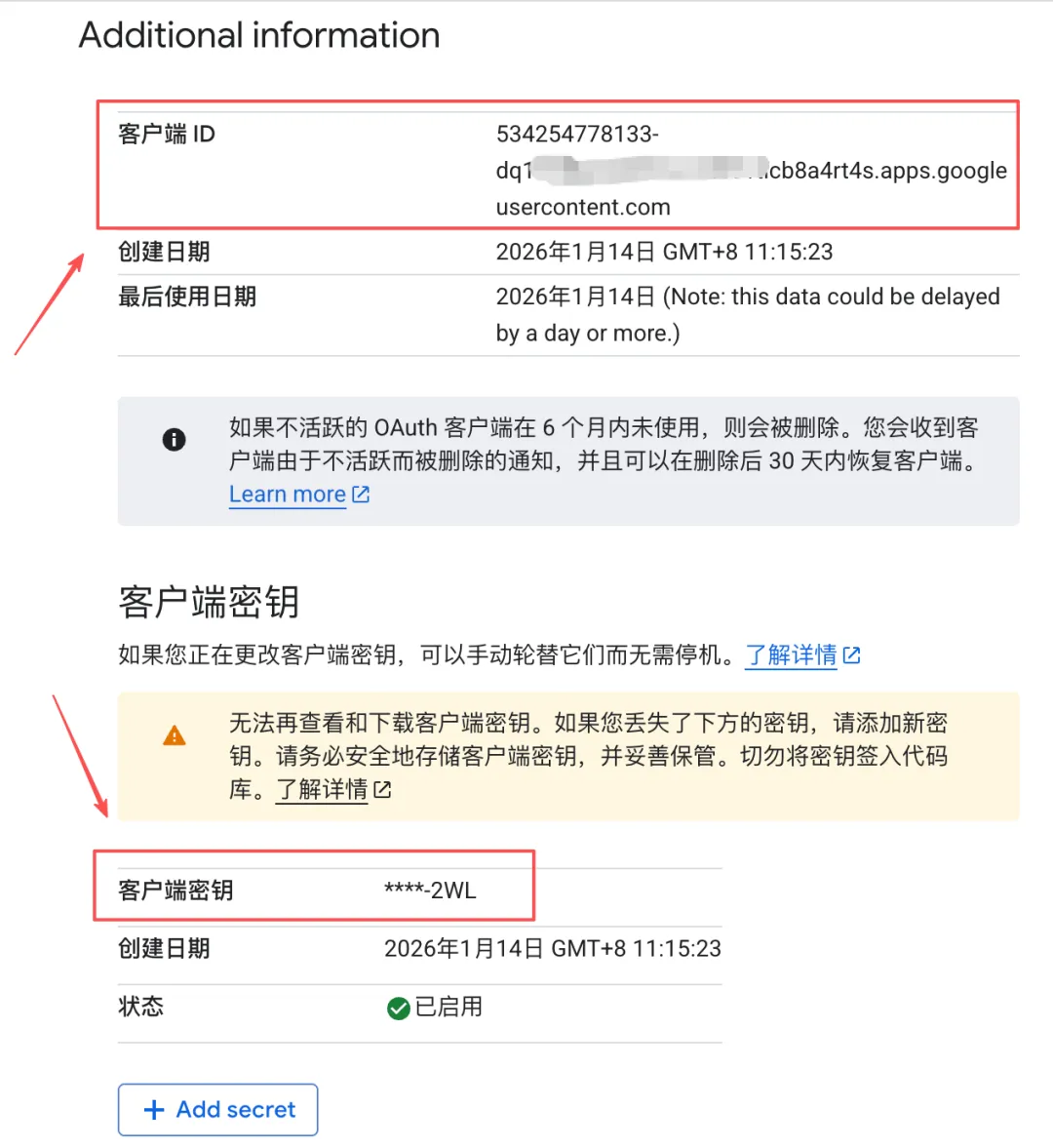 点击「创建」,完成客户端注册。