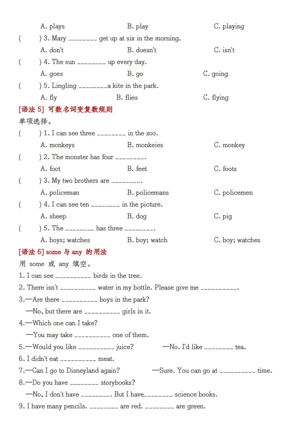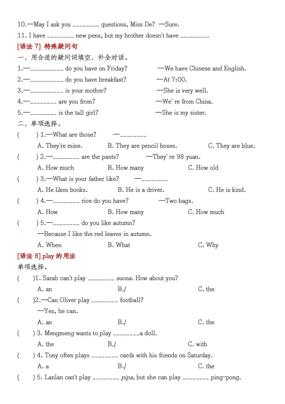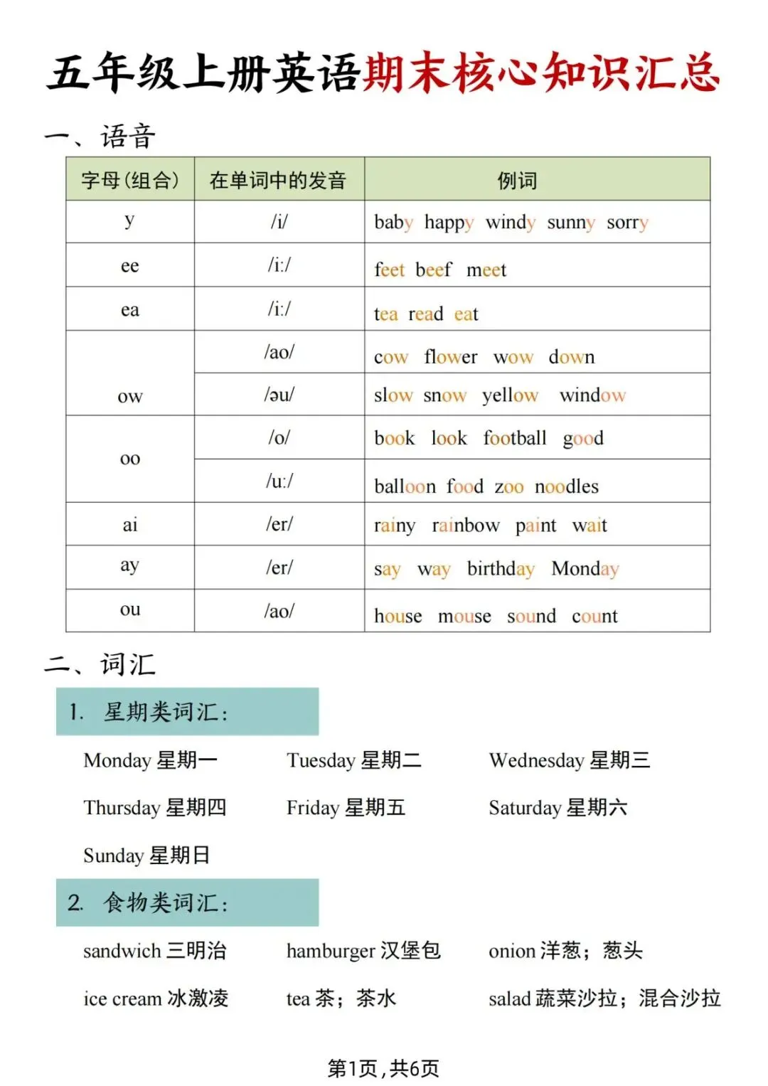五年级上册(人教版)英语期末复习重点知识点汇总+语法精练专项练习(含答案) 电子版可打印