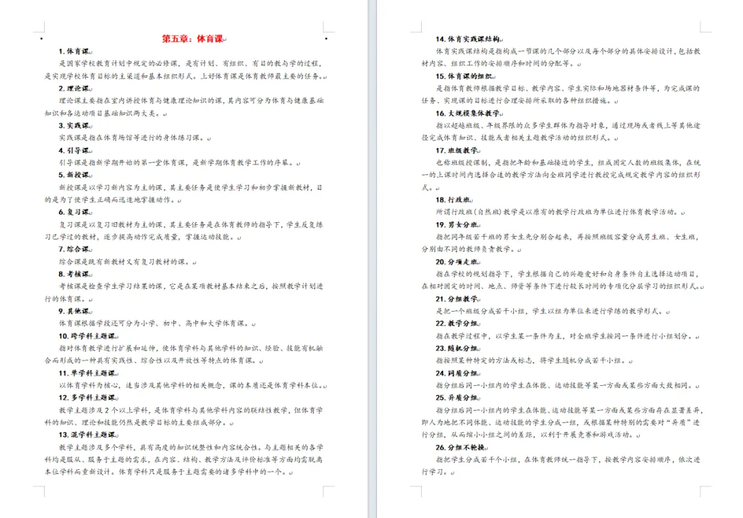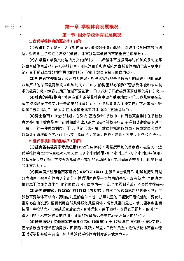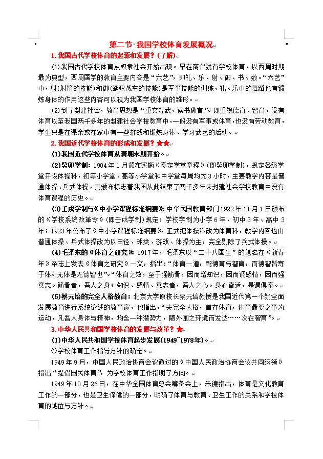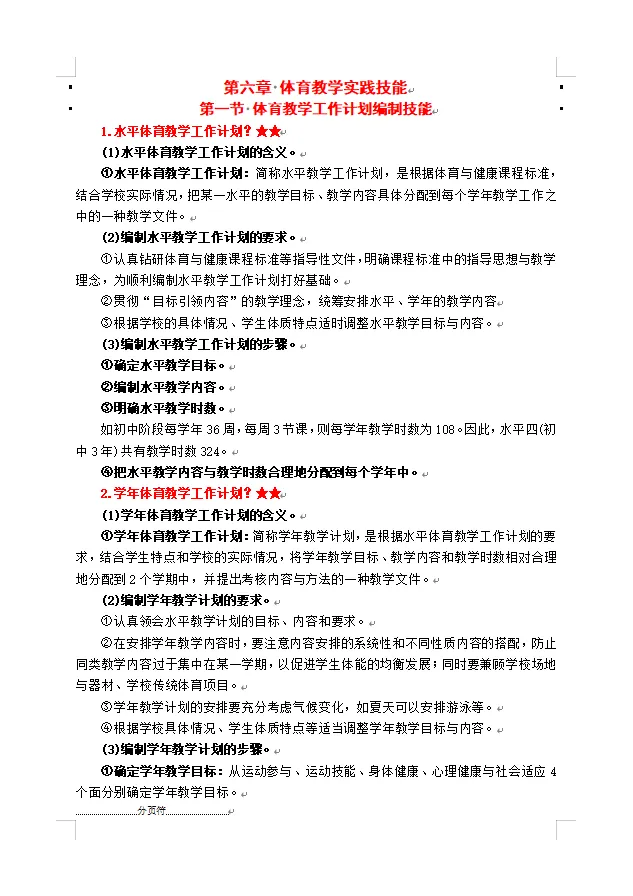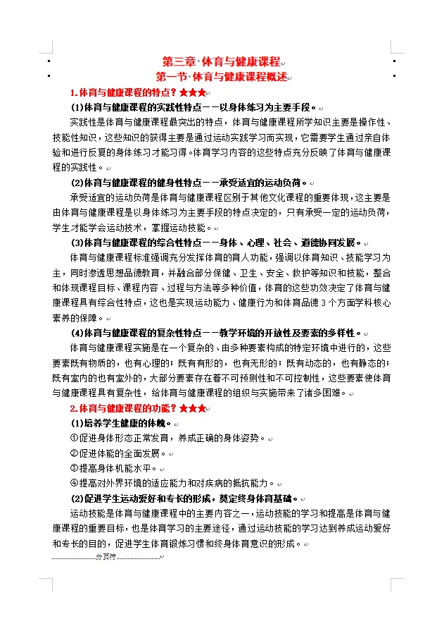 经过小李学长体育考研团队老师的共同努力,对【学校体育教程刘海元2022版】书本内容进行了精缩提炼,以及重点内容的星级划分,下面是对资料部分重点内容的展示: