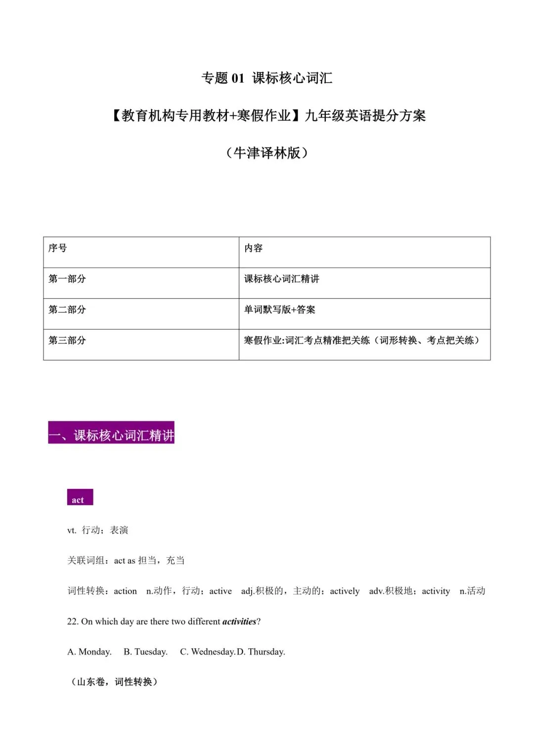 >九上英语提分方案 教育机构/学生寒假复习资料 译林版