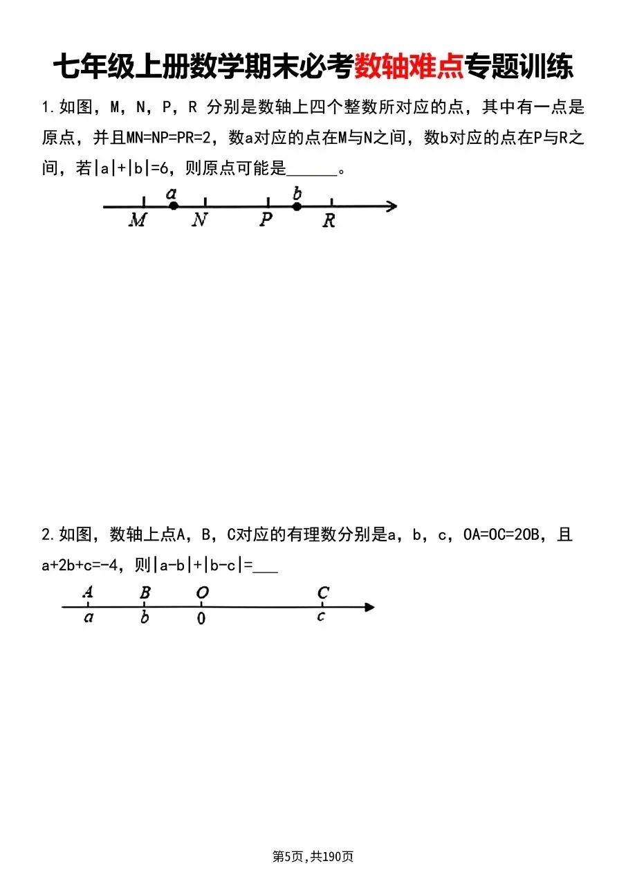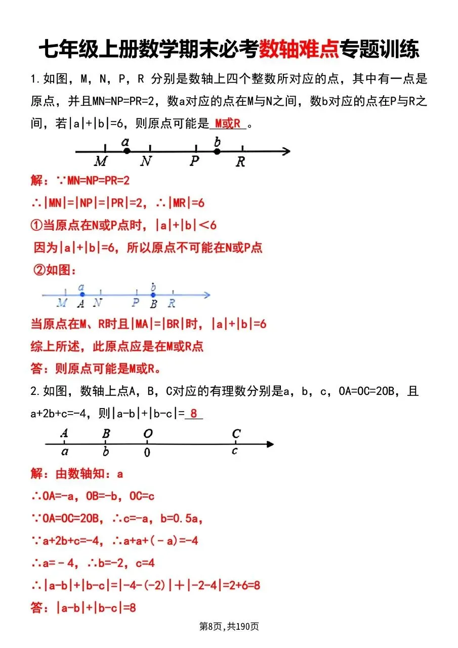 七年级初一上册数学期末复习重点8大专项训练,包含有理数必背知识点,数轴中的动点问题,与角有关的计算角度,绝对值3大考点专项培优,与线段有关的计算6大类型,一元一次方程常考16大题型,一元一次方程利润问题,解一元一次方程计算题,完整电子版含答案可打印