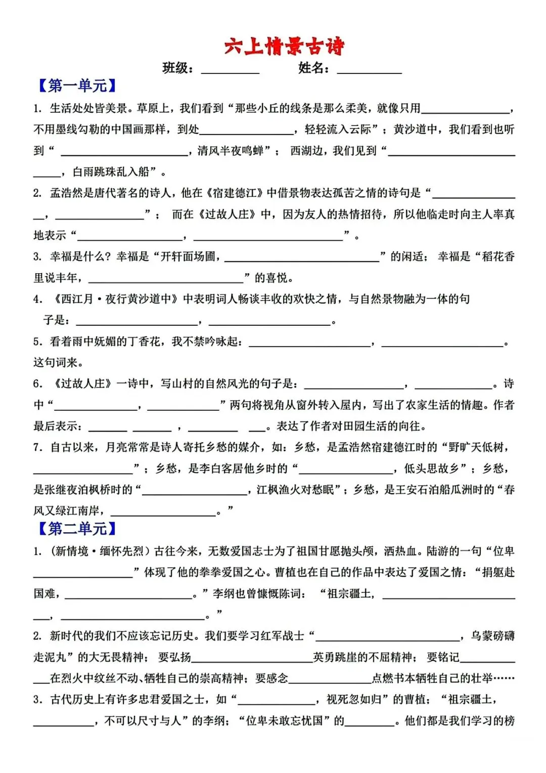 大家好,我是冯婉妈妈,今天分享的是六上语文期末复习资料必背古诗词练习附答案,关注我,每天持续分享更多的优质学习资料。