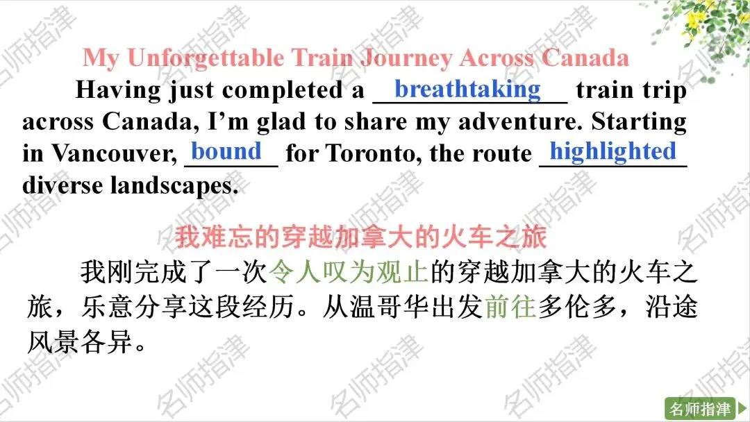 以上内容出自于《名师指津·高考英语提分教程(人教版)》,该书特色如下: