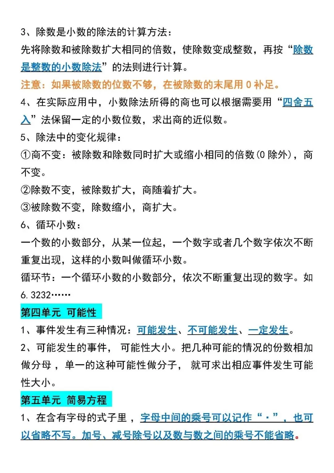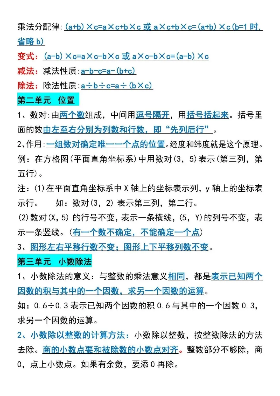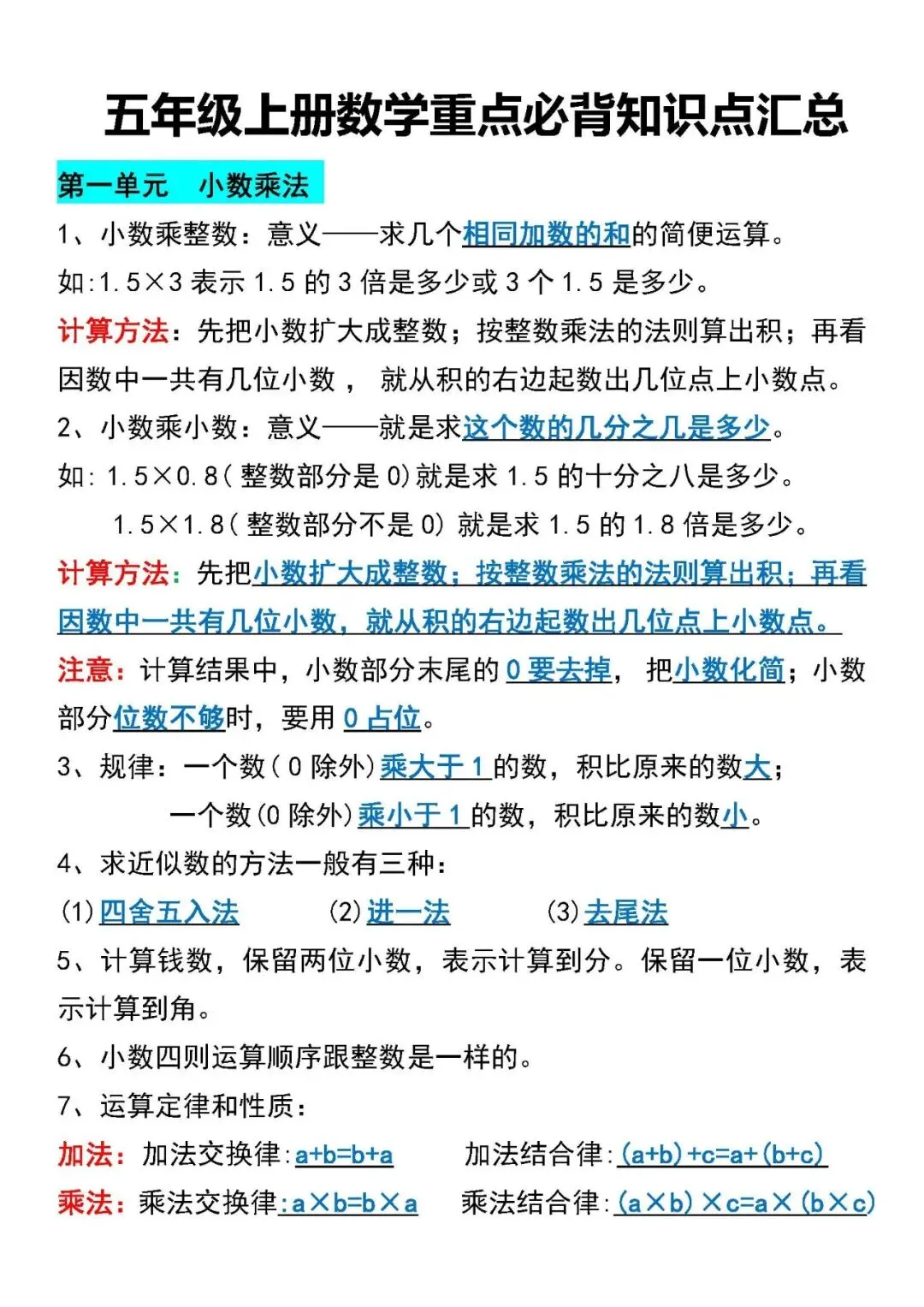 五年级数学上册期末总复习重点必背知识点汇总(附电子版可打印)