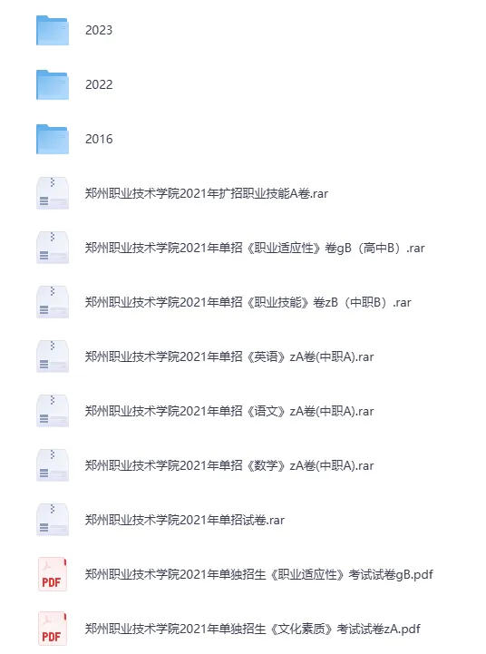 郑州职业技术学院2026年单招复习试题资料,需要的同学可自行下载打印。【
