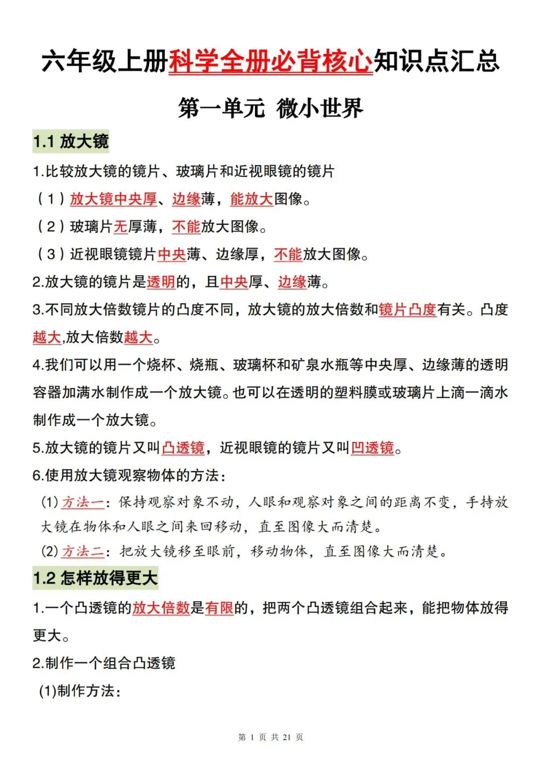 >六年级期末科学复习资料
