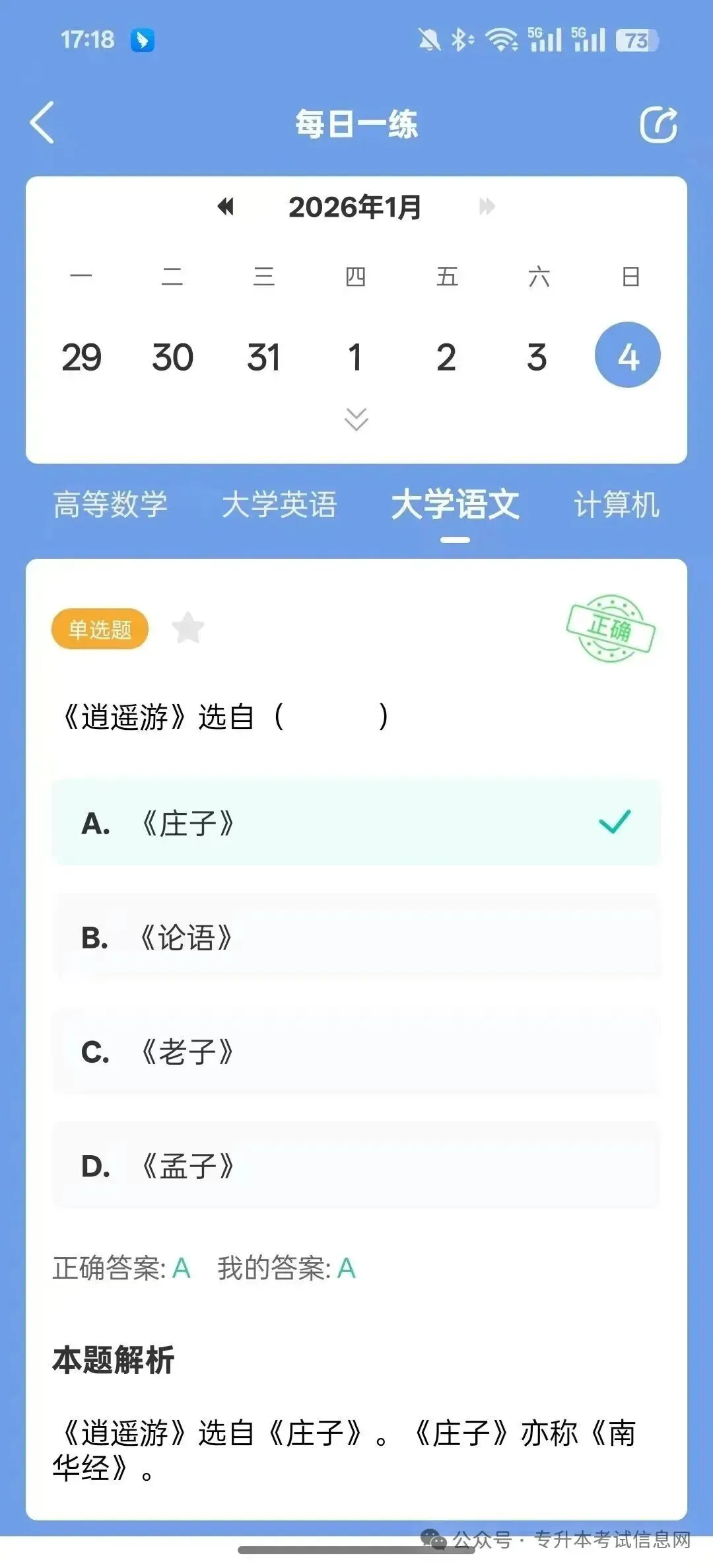 专升本备考免费刷题APP,不仅有每日一练可以每天刷题打卡,还有随机刷题、题型训练、章节训练和错题集,一部📱就可以做练习,简直不要太方便。