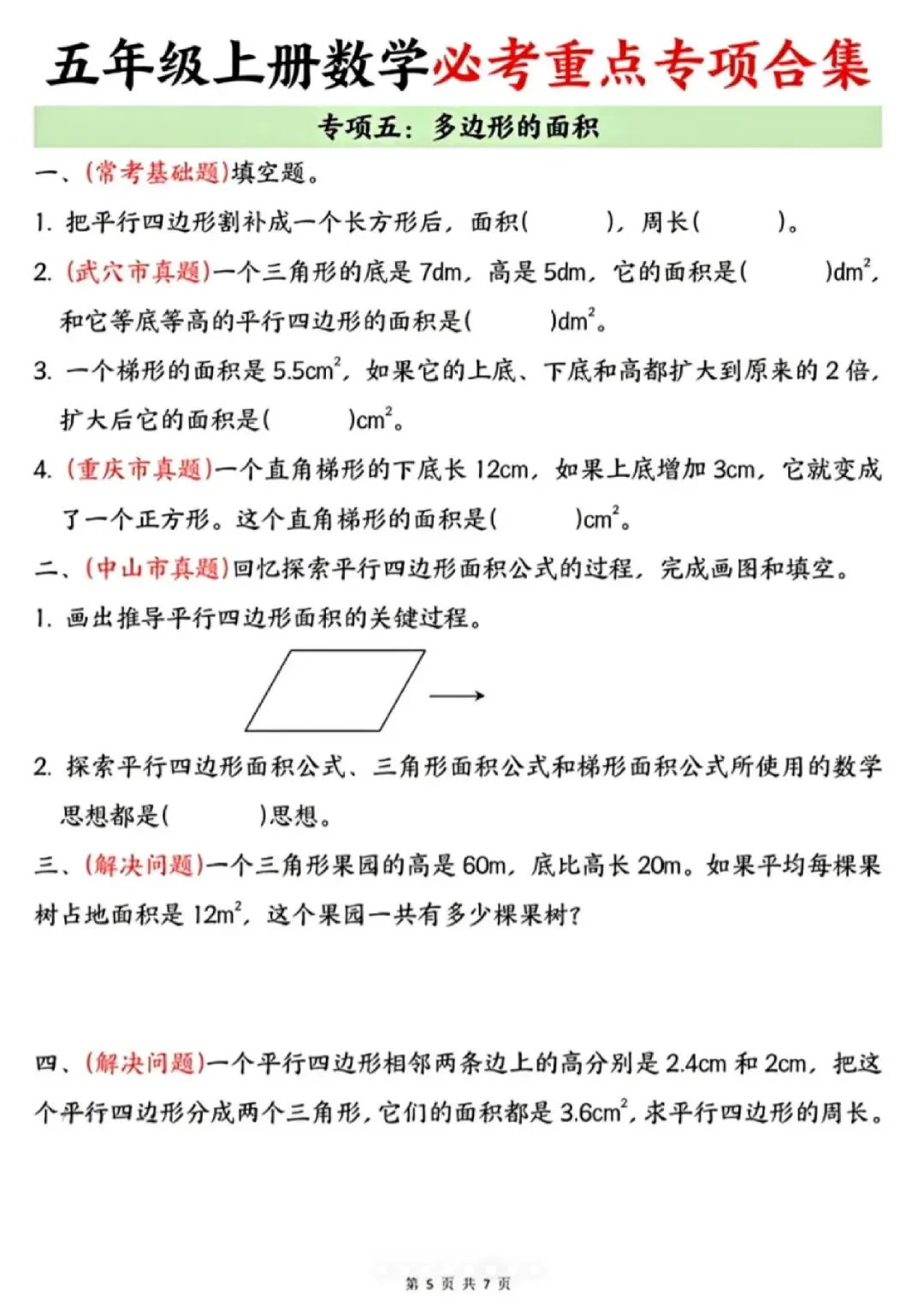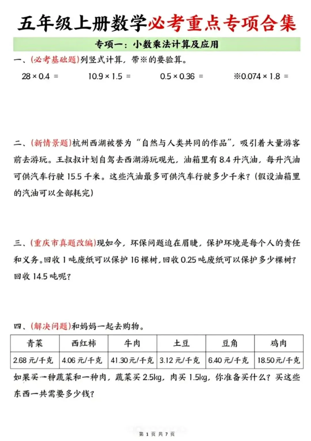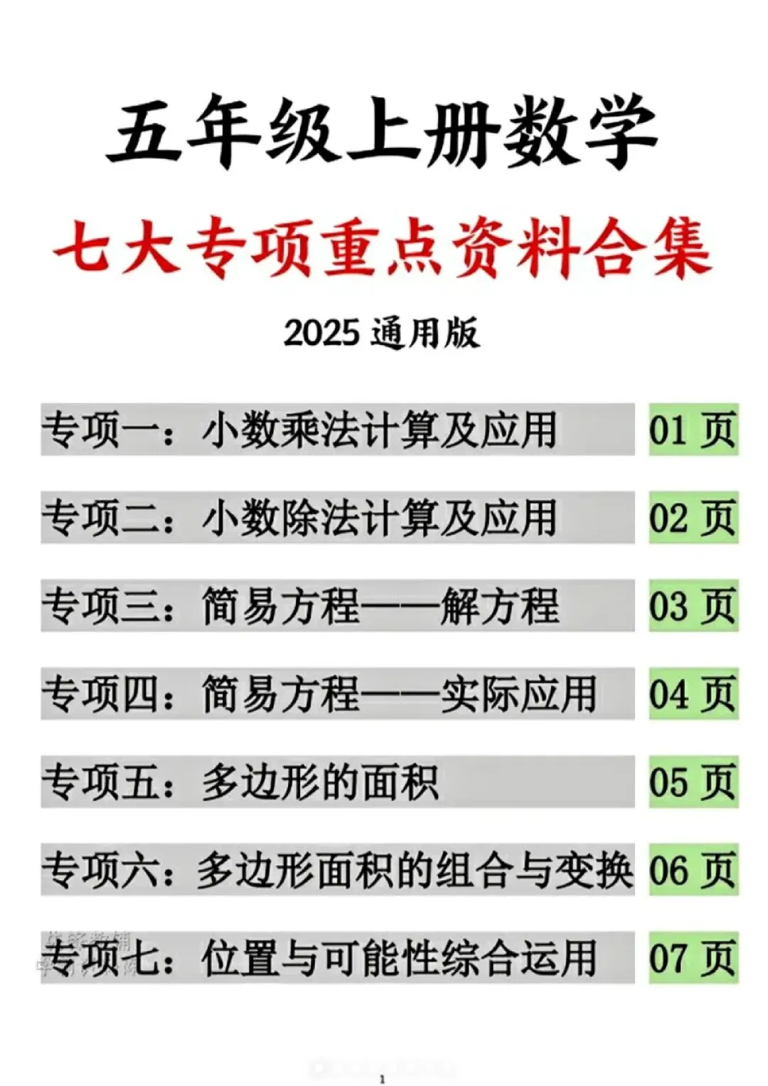 今天给大家分享的是:25新五年级上册数学通用版《期末复习-七大专项重点资料合集》|完整高清电子版可打印