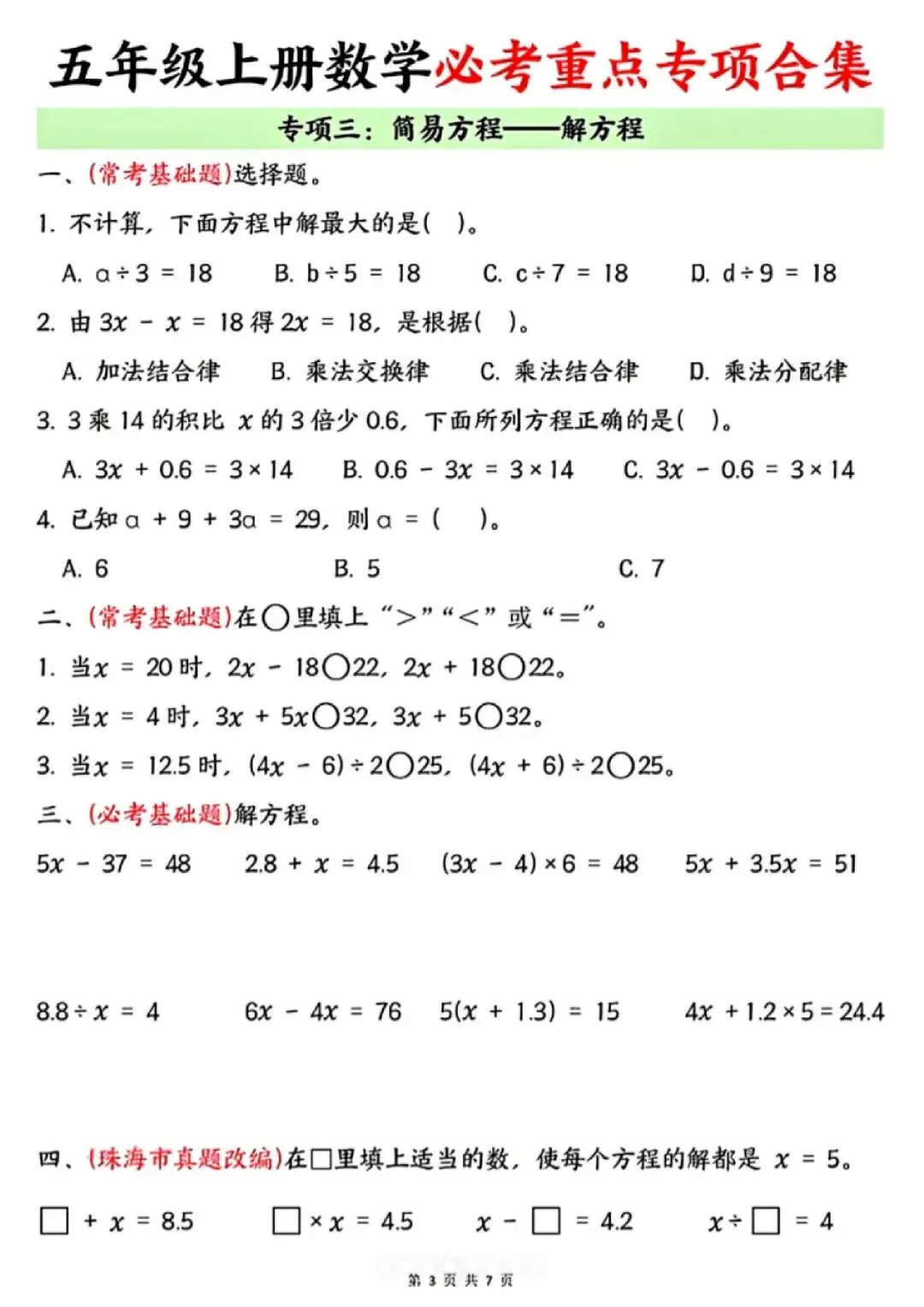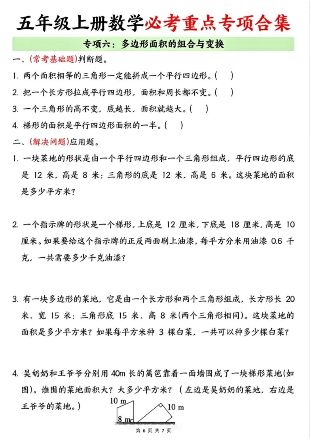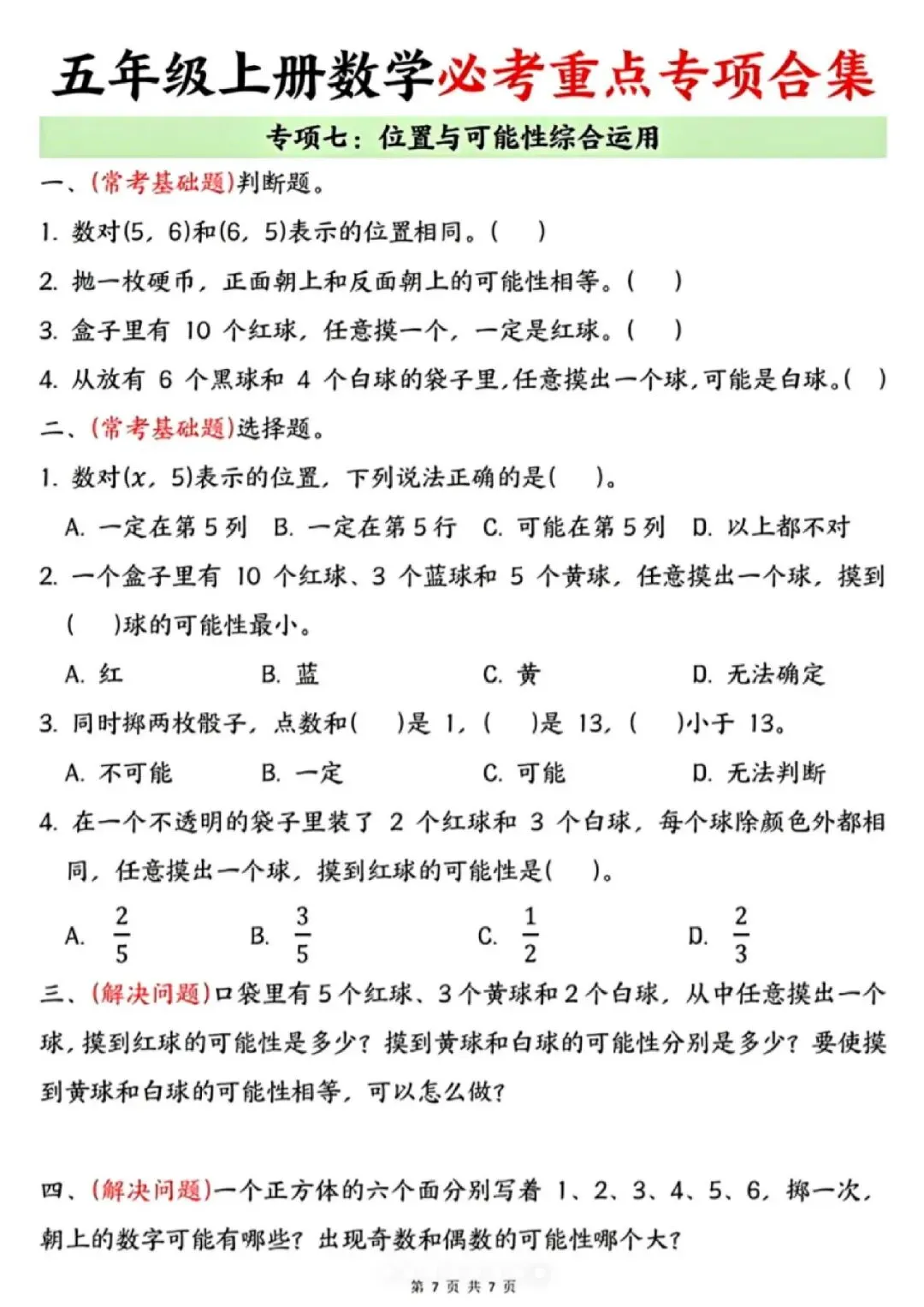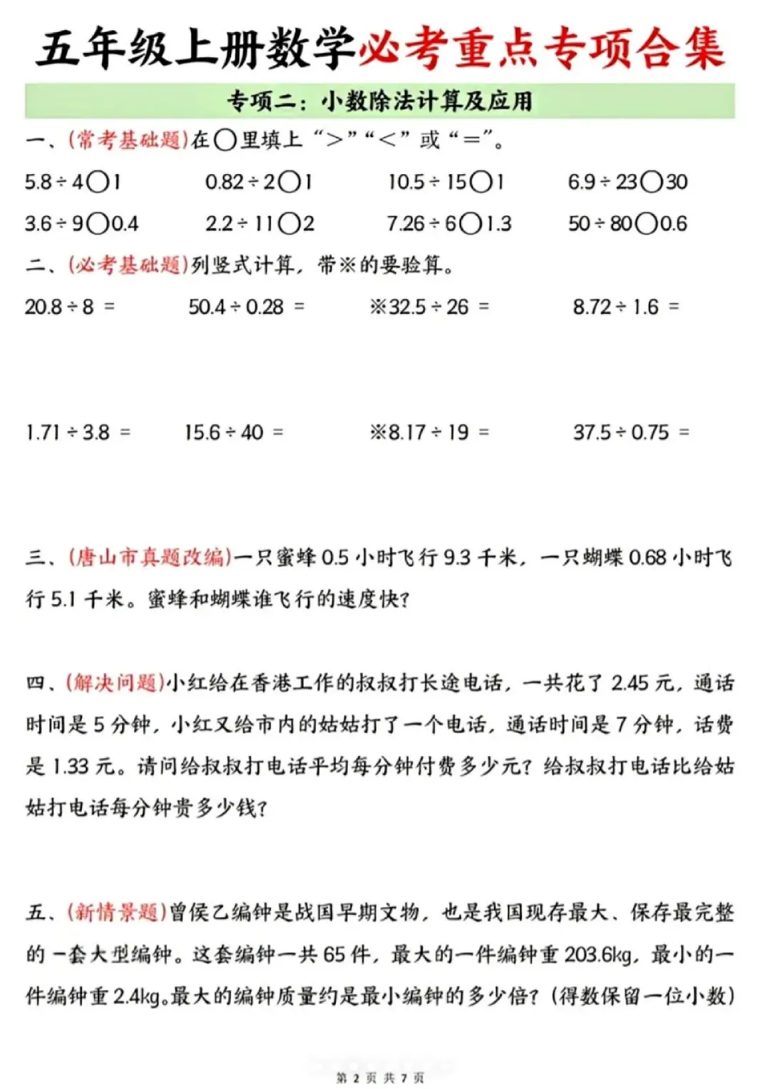 今天给大家分享的是:25新五年级上册数学通用版《期末复习-七大专项重点资料合集》|完整高清电子版可打印
