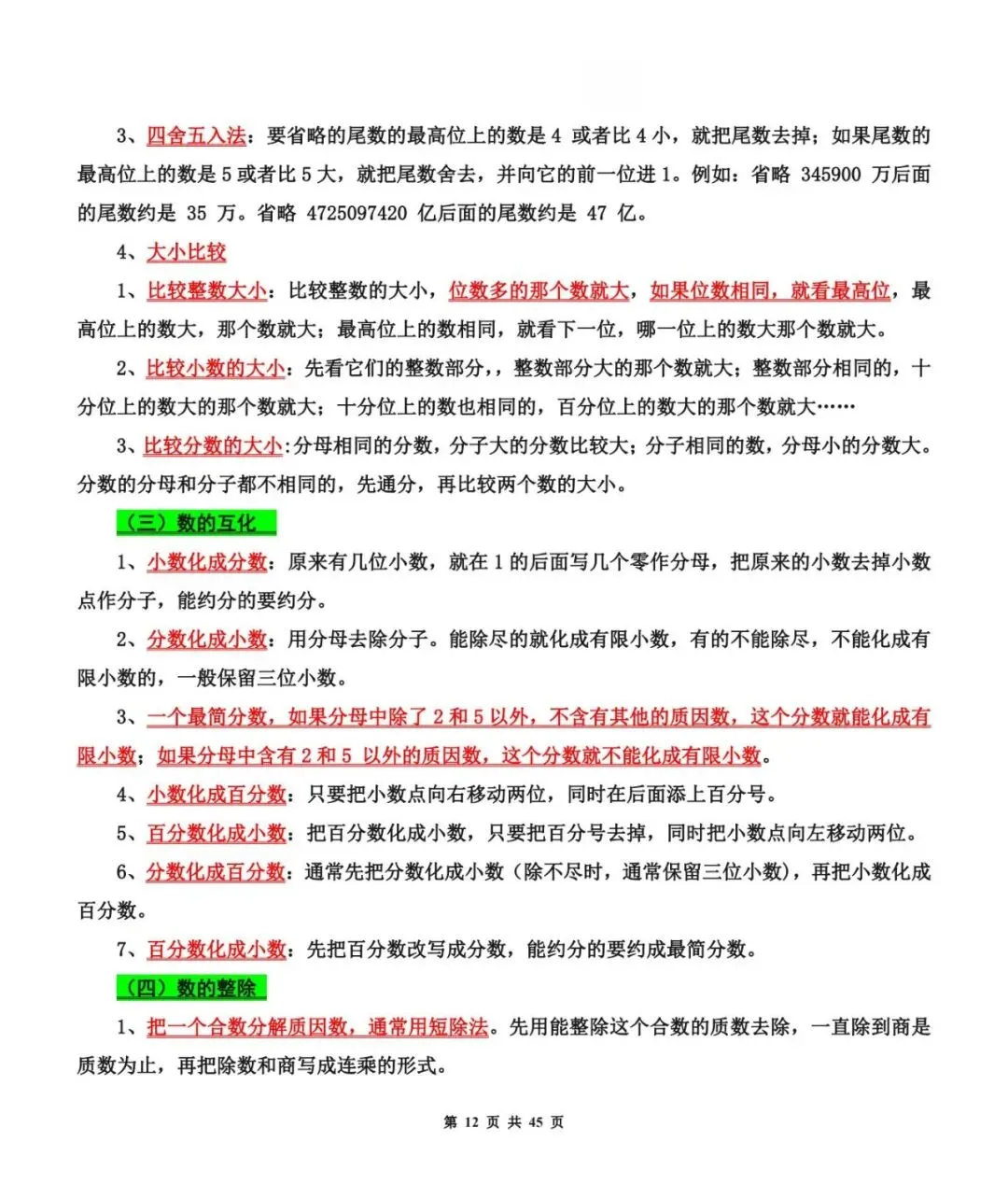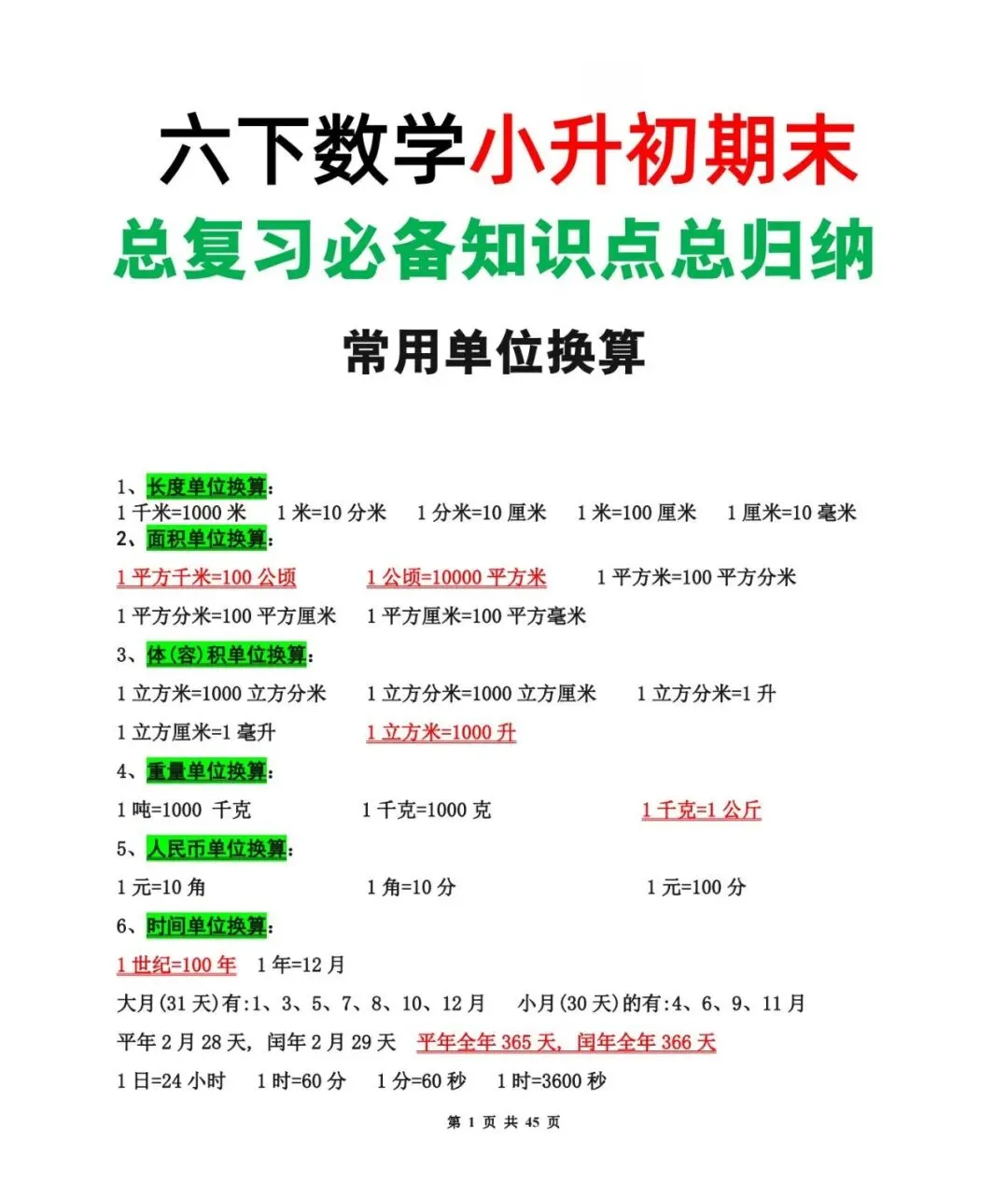 【小学资料】26春六年级下册数学《小升初总复习总归纳》(45页)电子版可打印