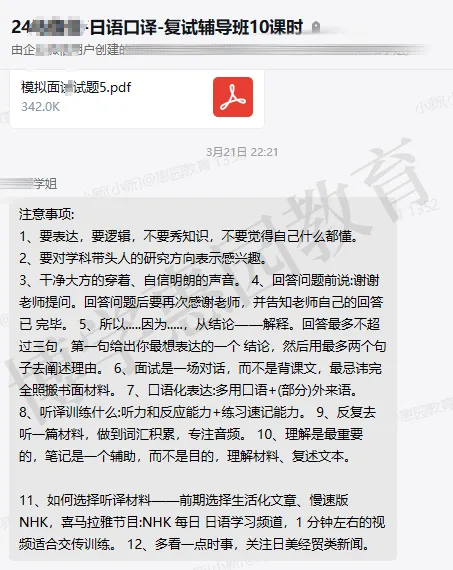 第一部分为复试简介,在此特为大家整理了历年分数线、重要时间节点、复试工作流程、复试准备以及参考例题,让同学们从整体上把握日语口译复试流程。提前了解复试具体细节,做到心中有数。第二—七部分,从复试各个环节一一击破。