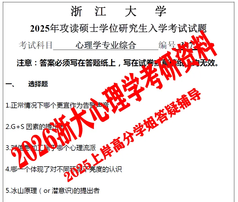 2,2020-2026年浙江大学347心理学专业综合考研真题答案解析