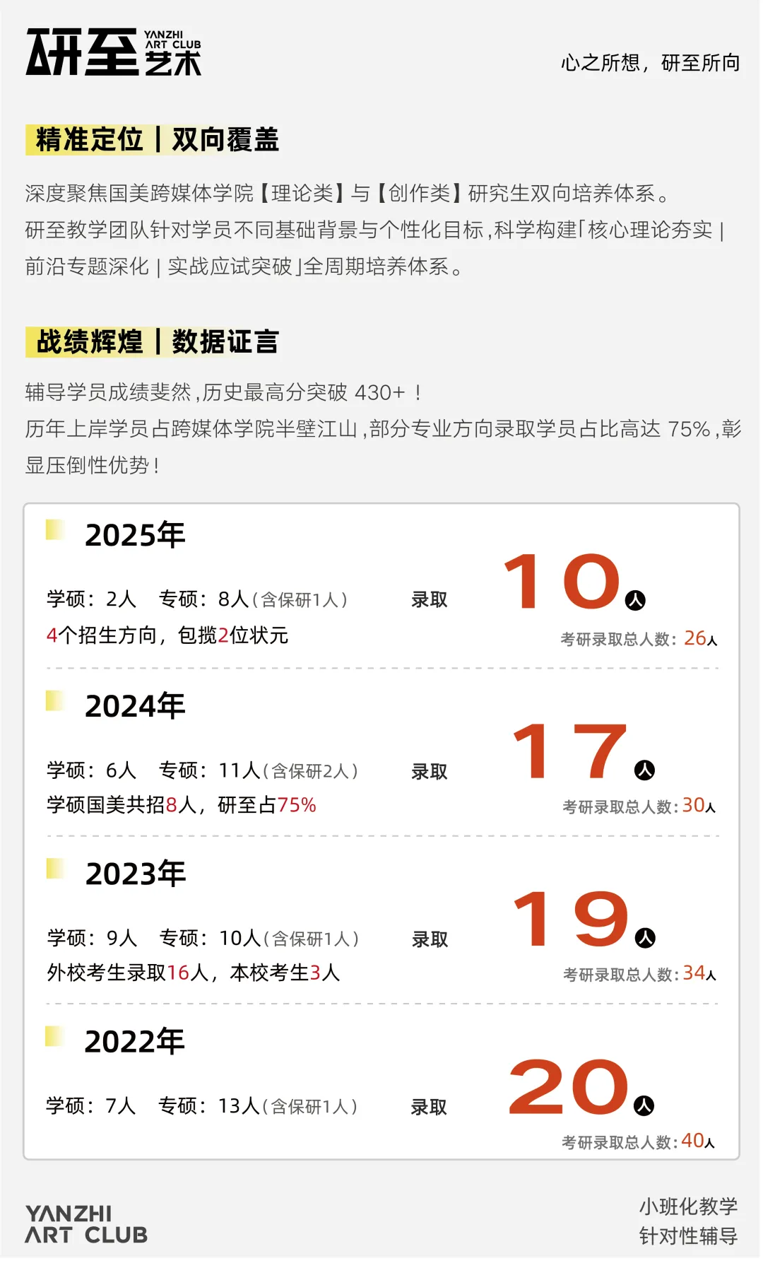 研至跨媒体教学团队辅导学员成绩斐然,历史最高分突破430+,多位专业状元,历年上岸学员占跨媒体学院半壁江山,部分专业方向录取学员占比高达75%,彰显压倒性优势!