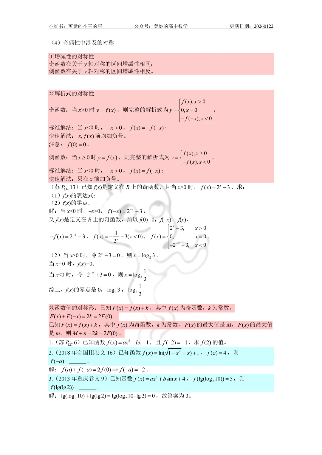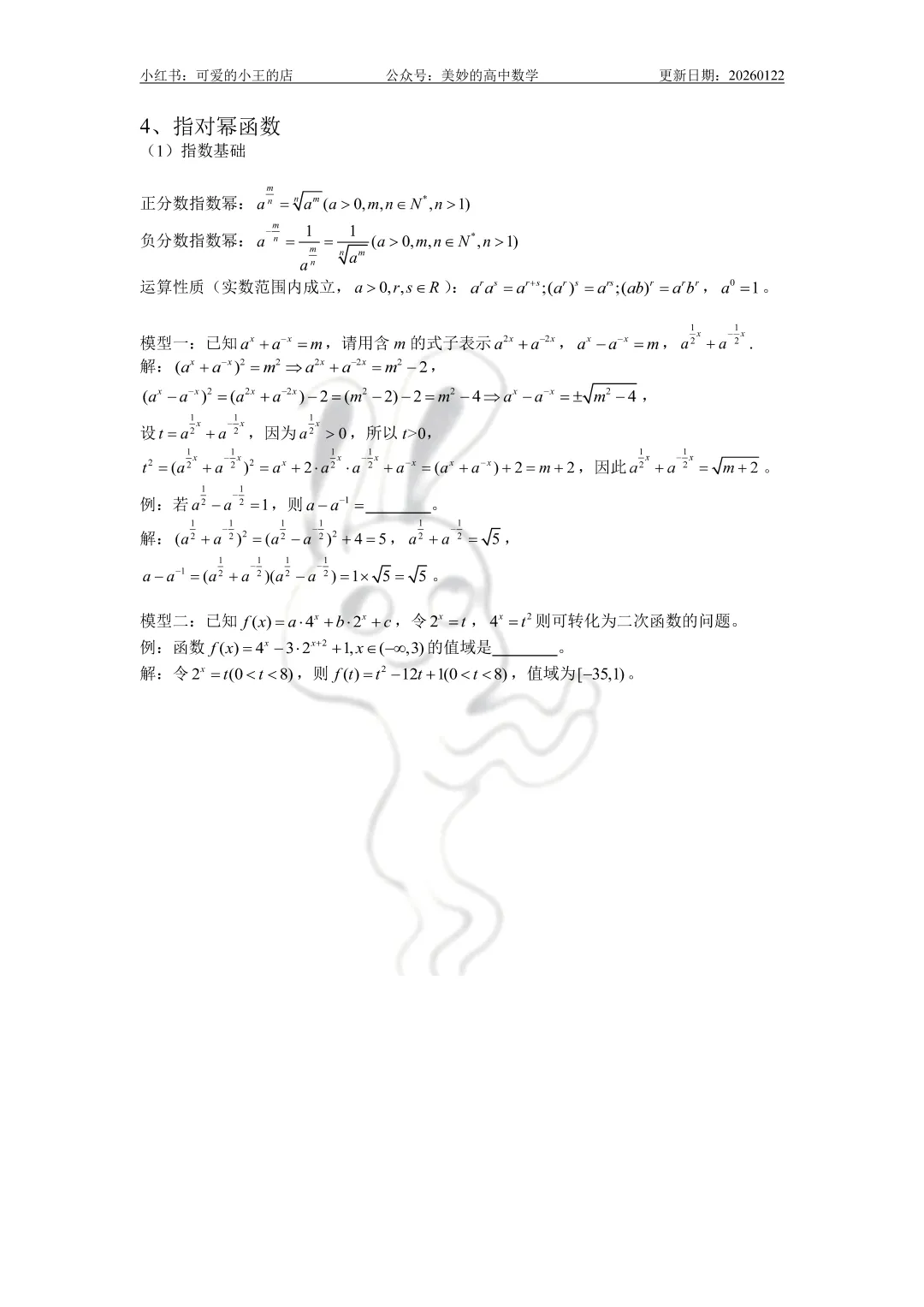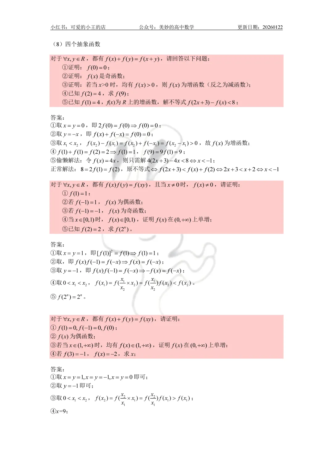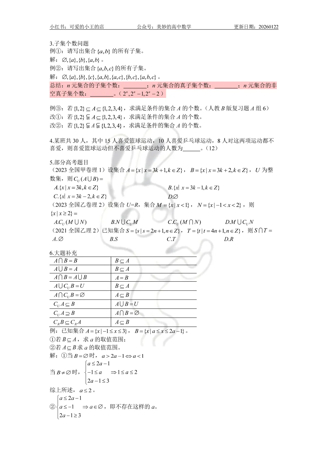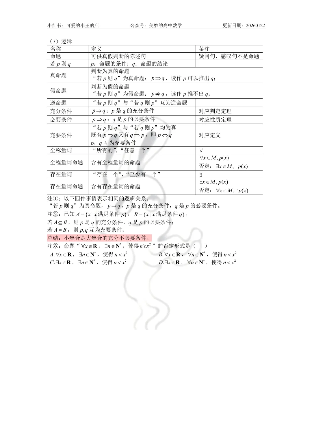 今天要分享的是高一上除了三角函数外的精简版复习资料。
