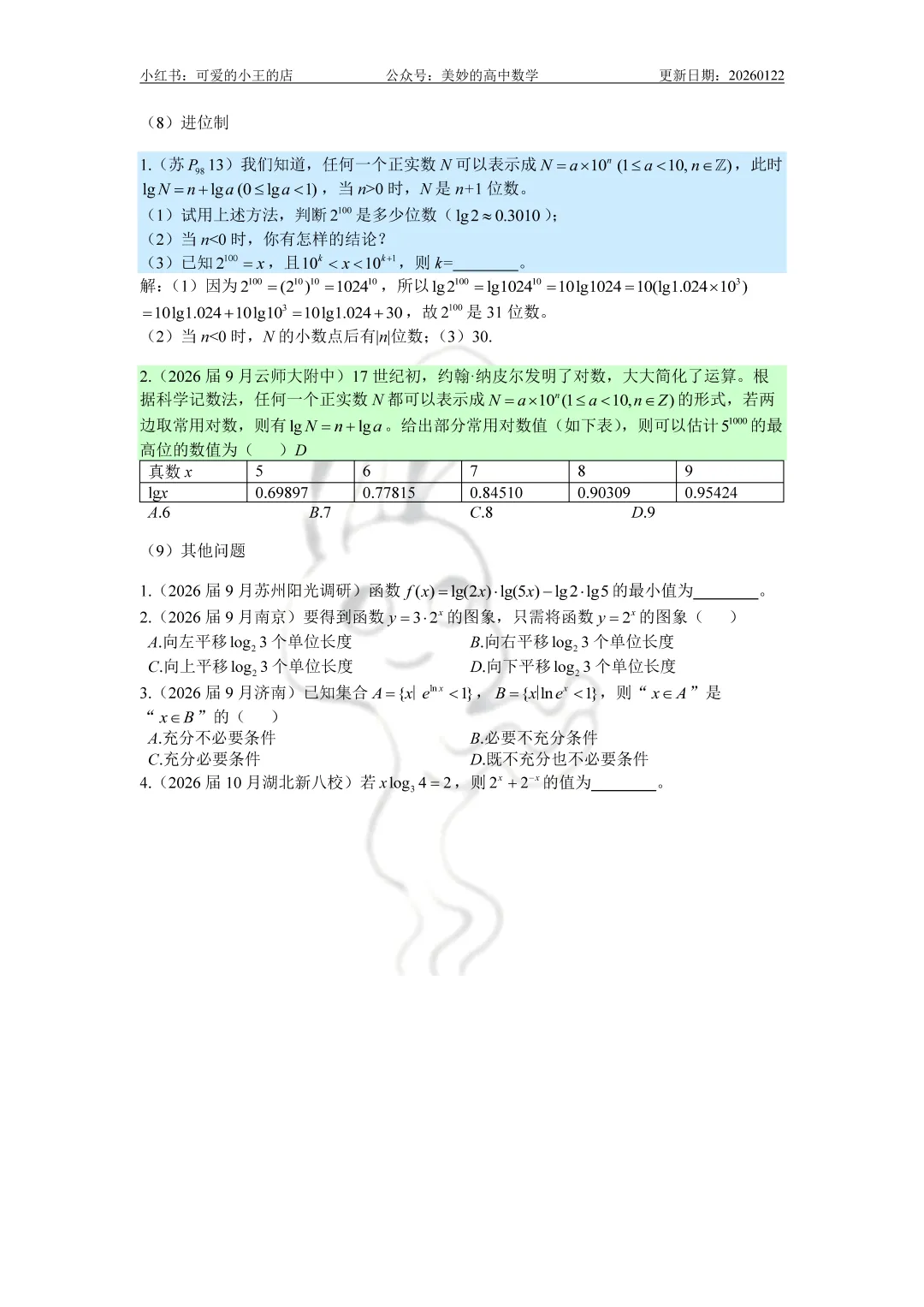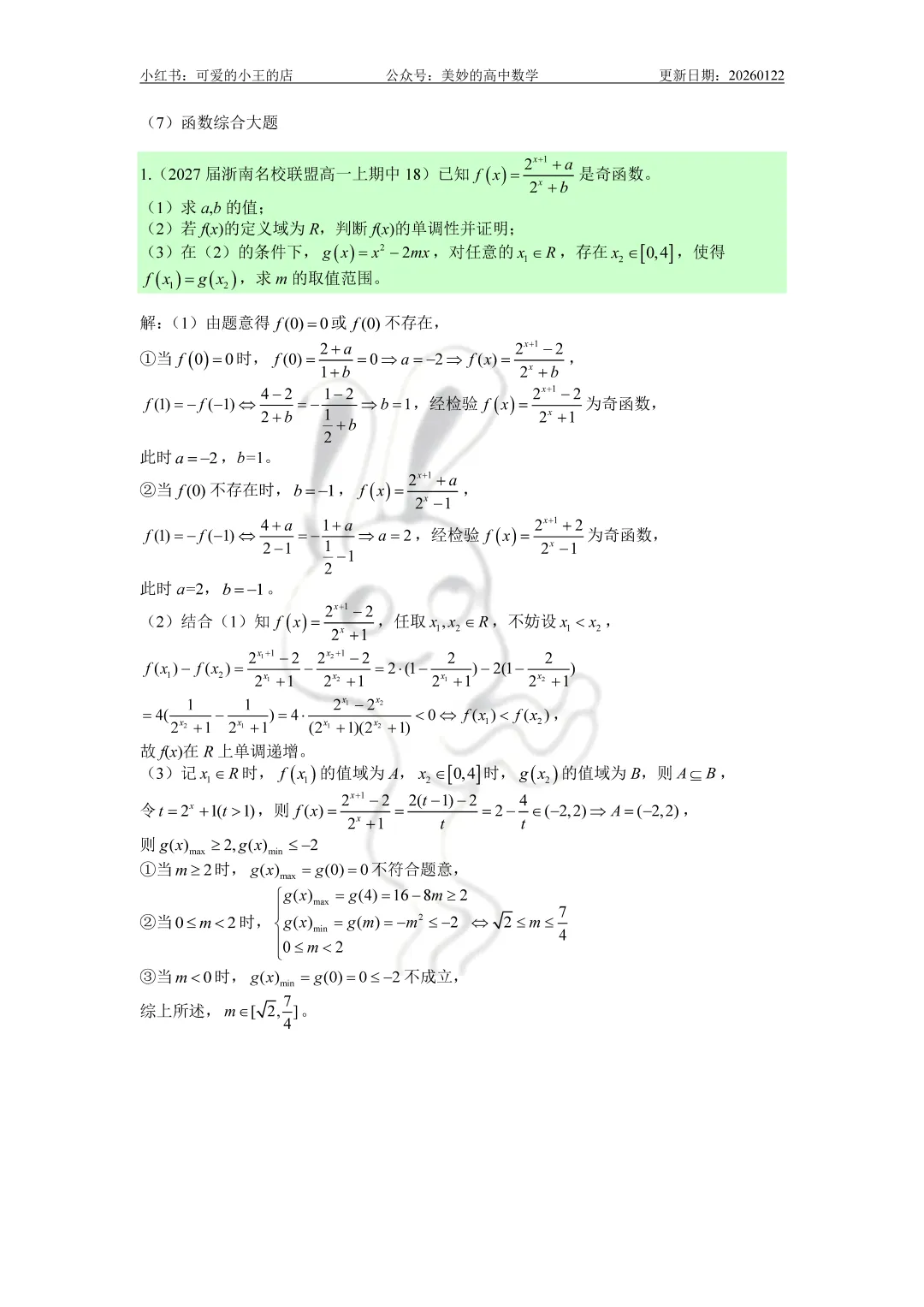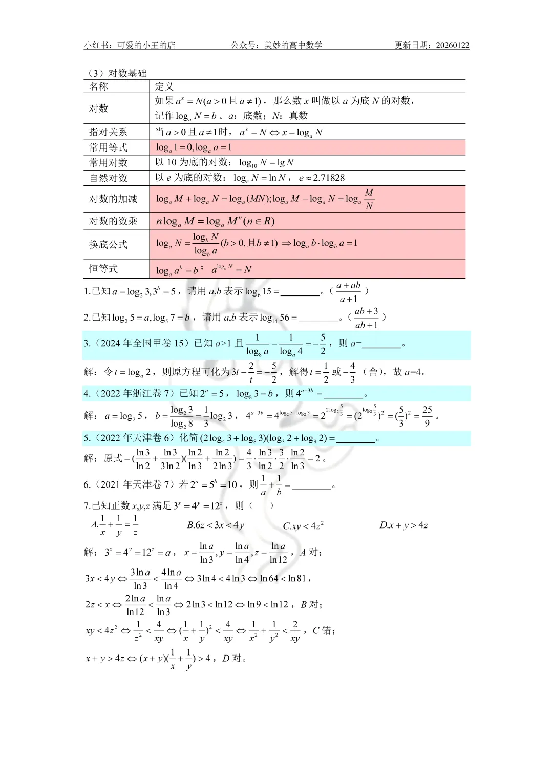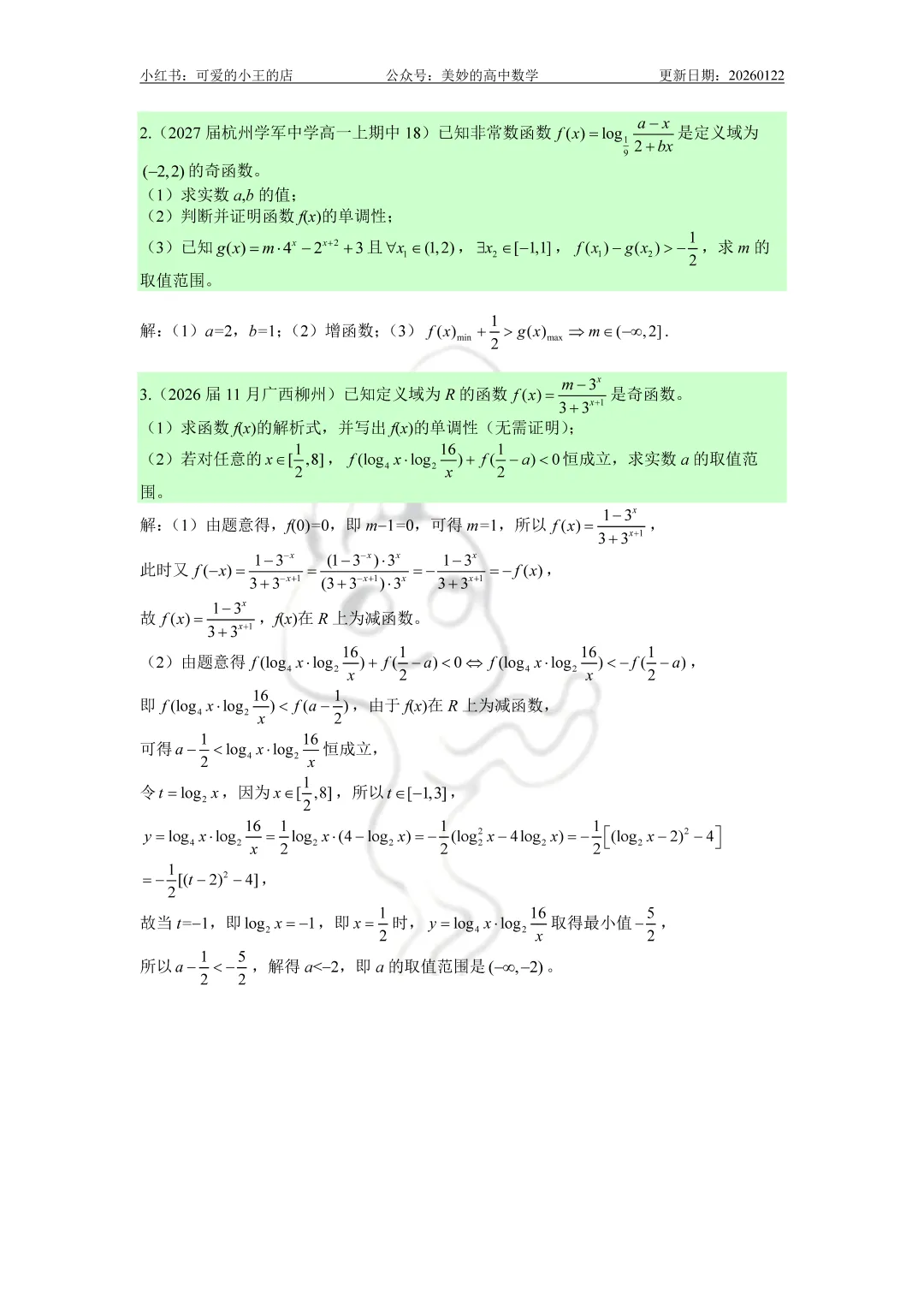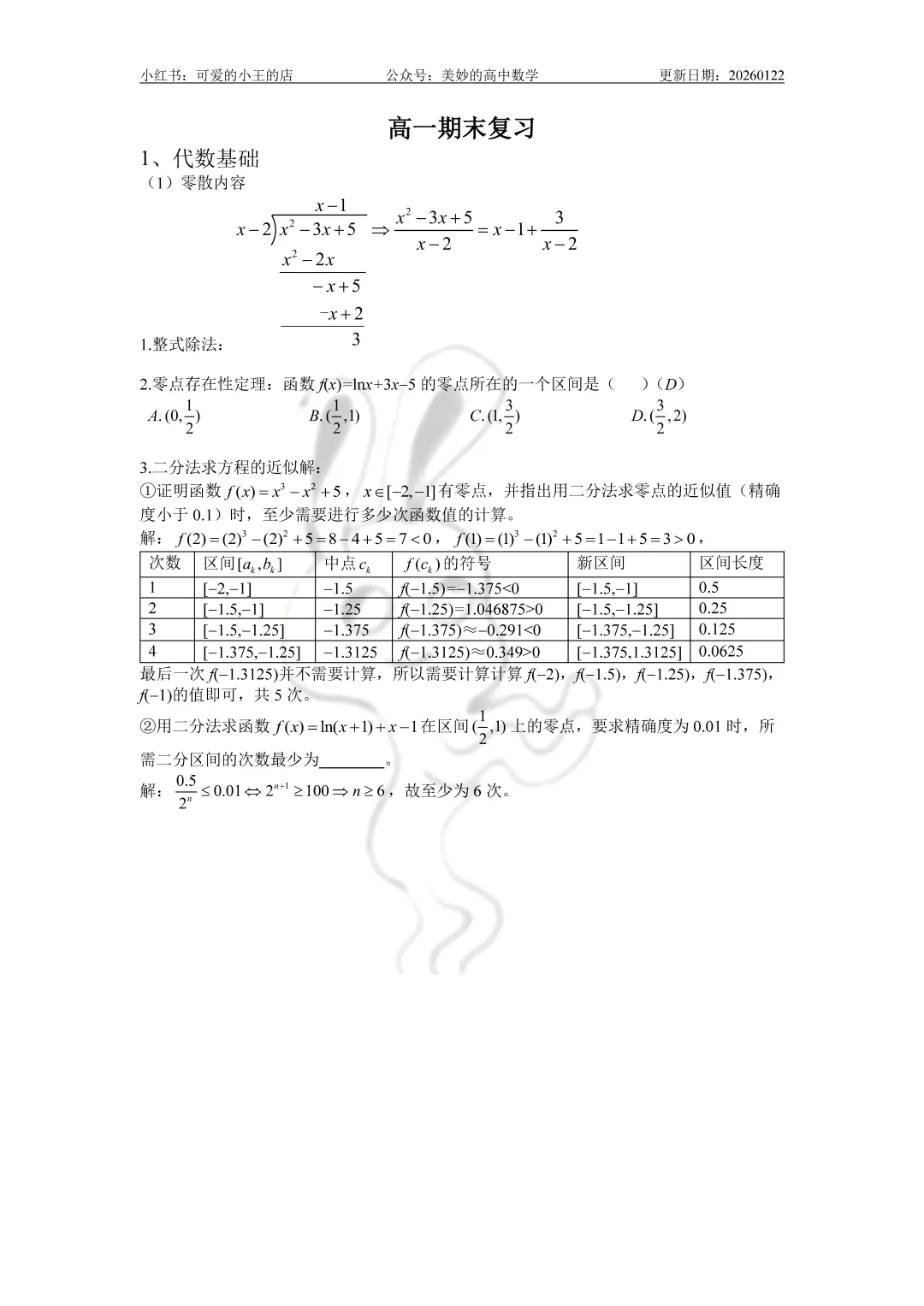 今天要分享的是高一上除了三角函数外的精简版复习资料。