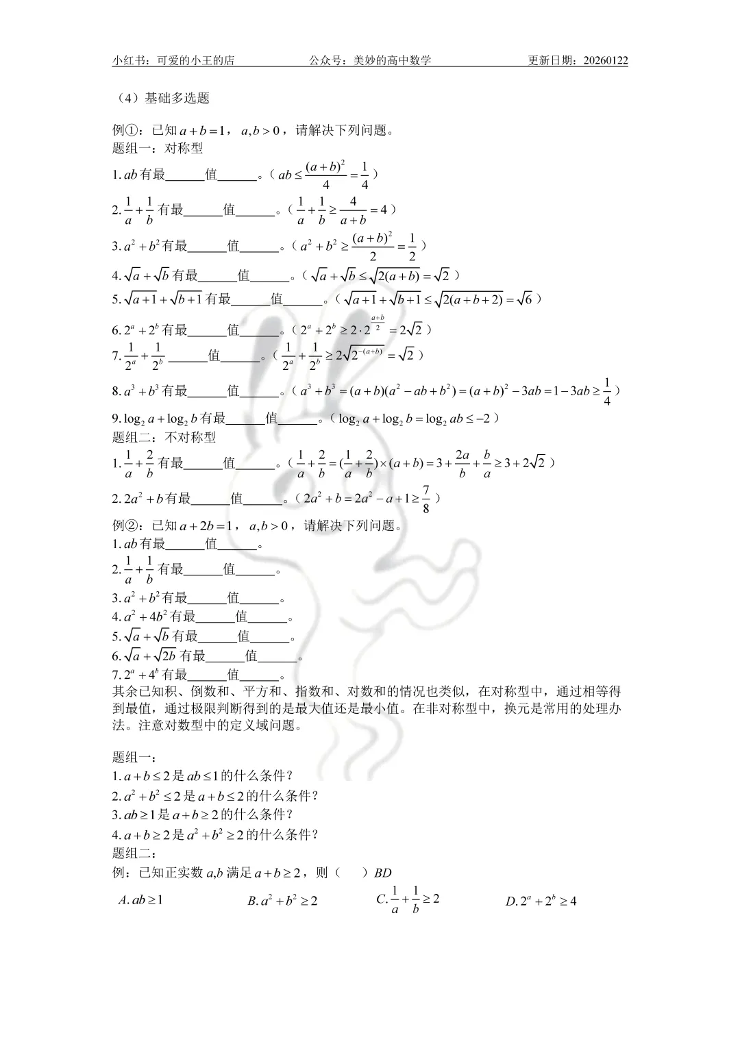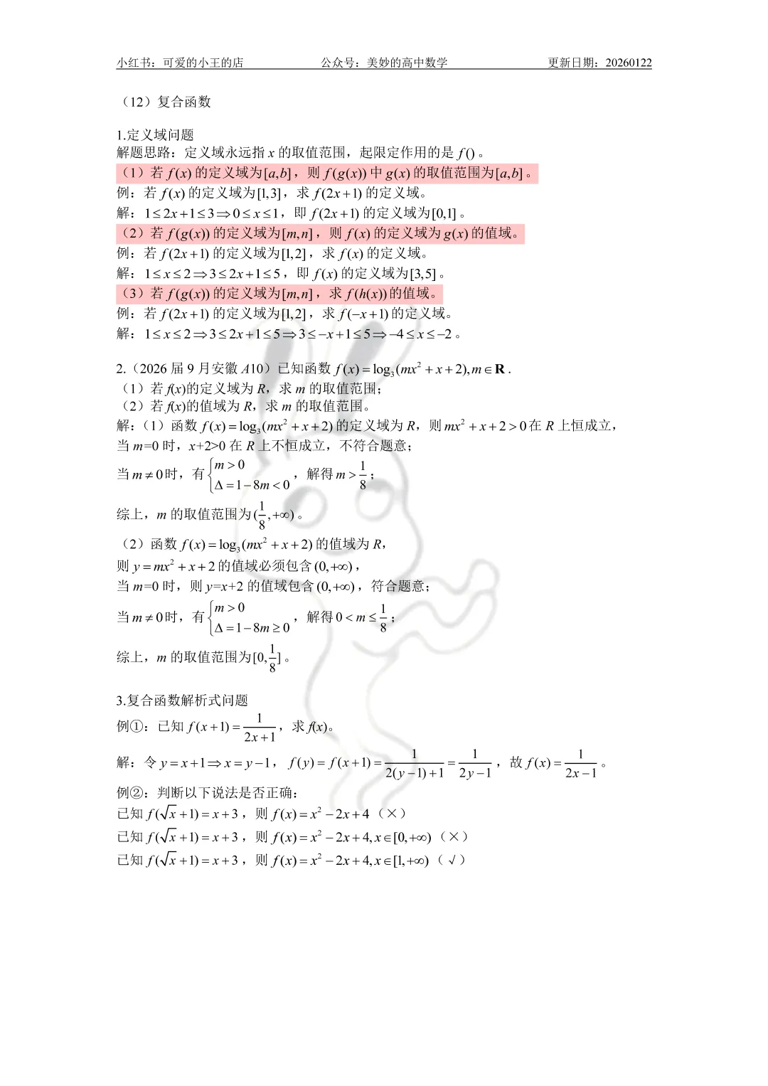 完整版的知识点汇总系列资料约250页(不含三角函数),三角函数部分约150页,仅出售纸质版,电子版不再分享。