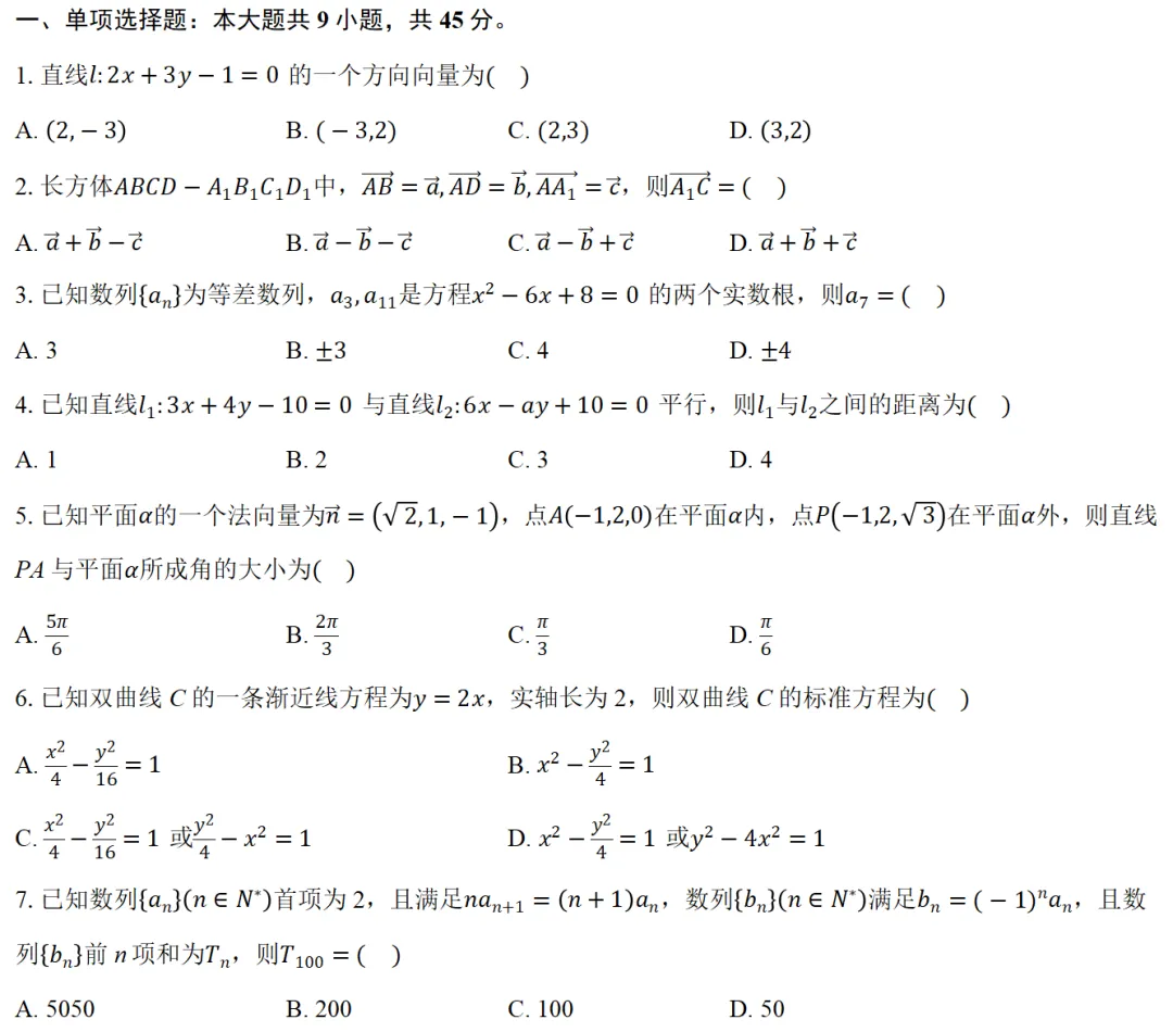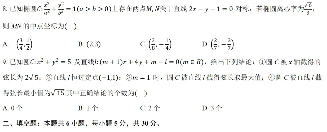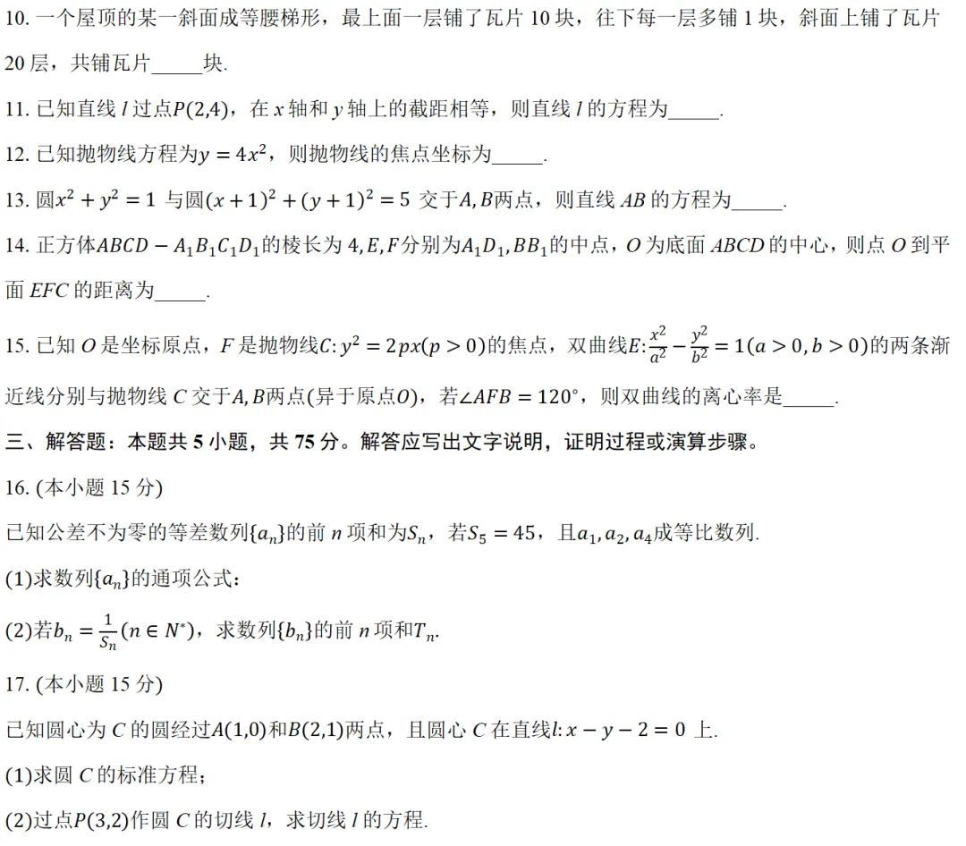 >【期末复习资料】2024-2025学年第一学期和平区高二数学期末试卷及解析