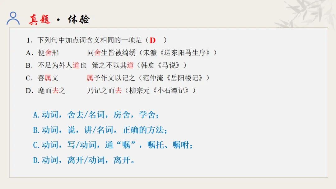 4.重视注释,寻求“外援”。文后注释绝非可有可无,关于人物和事件背景的注释,往往也关系到我们对选项正误的判断。