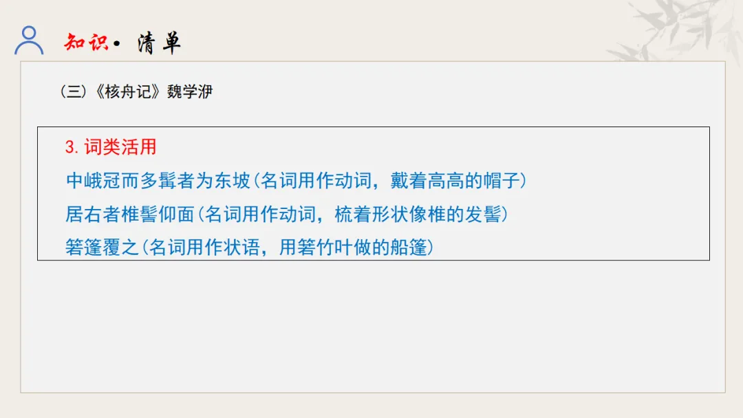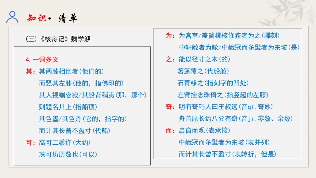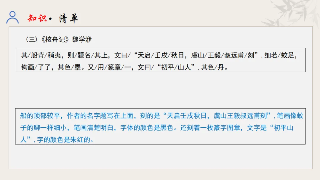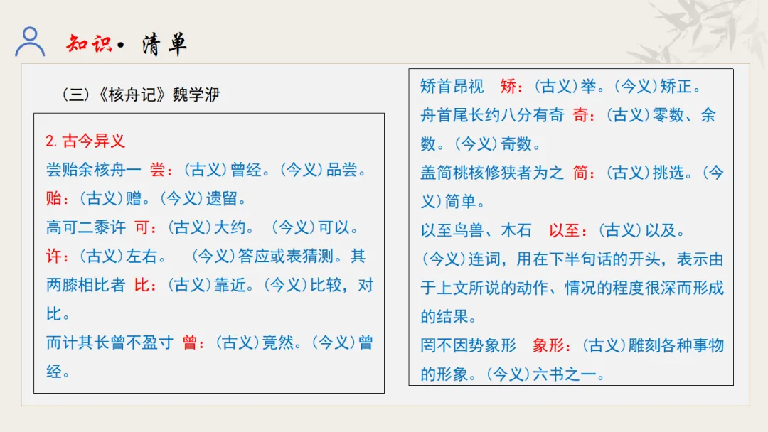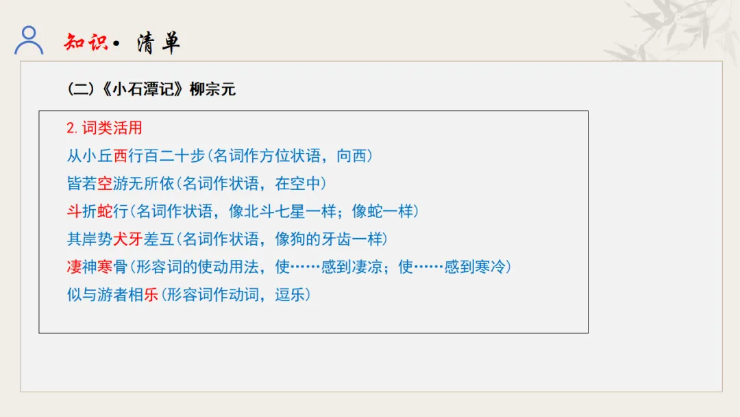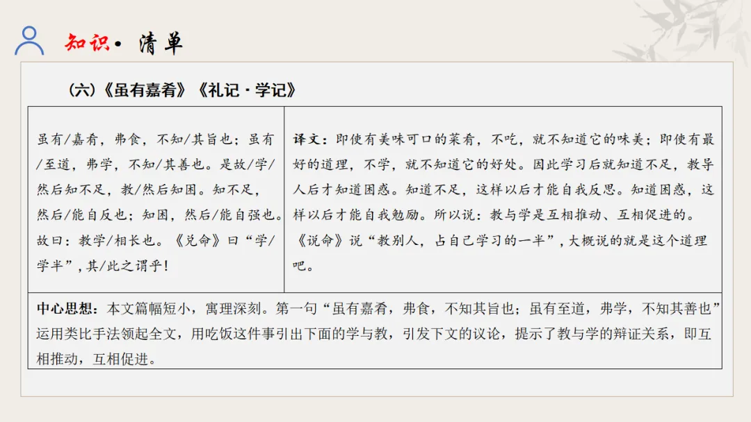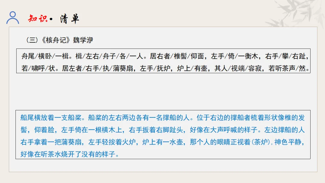 教材溯源 | 1. (《短文二篇》“思考探究三”)细读《记承天寺夜游》,体会作者的心境。结合写作背景和你对苏轼生平、思想的认识,谈谈对“闲人”的理解。2. (《醉翁亭记》“思考探究三")本文多处提到“乐”,主要表现了哪几种“乐”? |