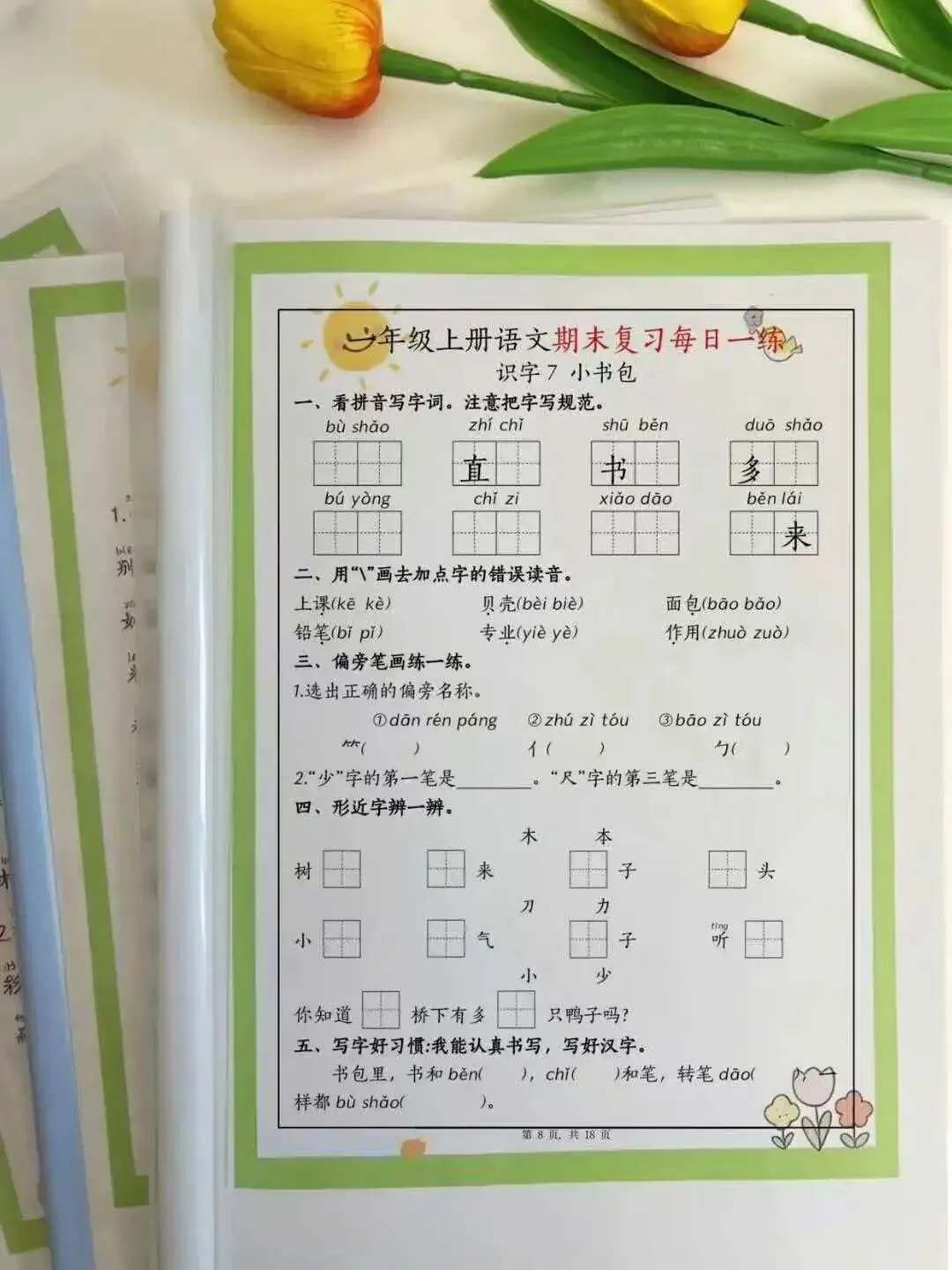 大家好,今天给大家更新📖:一年级资料语文上册期末复习每日小练,可打印