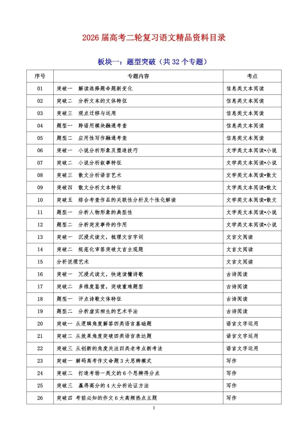 2026届高考二轮复习语文精讲精练资料包简介(第2476期)