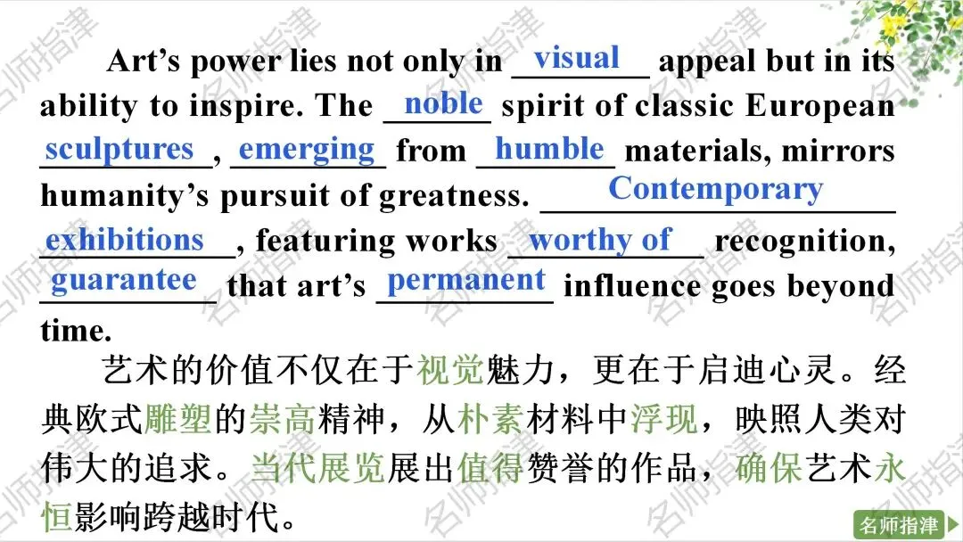 以上内容出自于《名师指津·高考英语提分教程(人教版)》,该书特色如下: