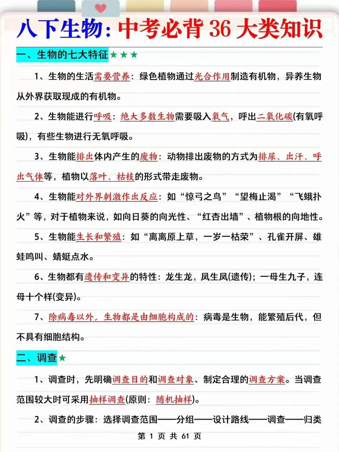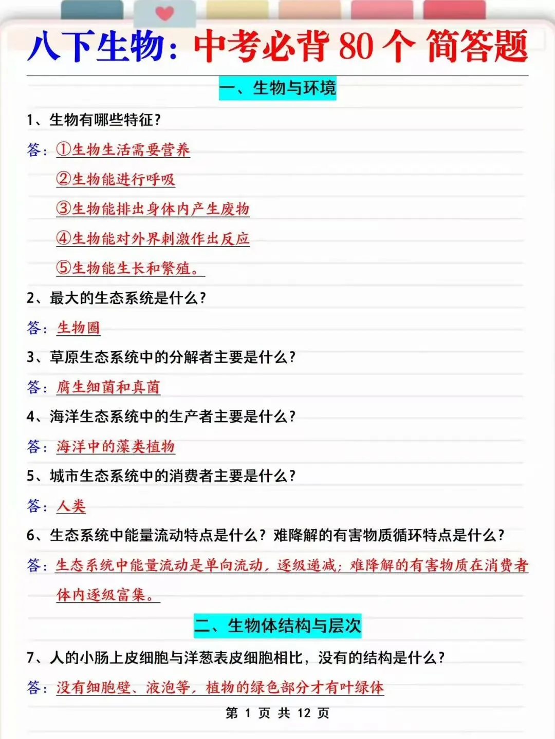 资料为电子版,可直接打印使用!建议家长立刻收藏转发给孩子,照着学、对着练,从容应对6月生地会考,轻松拿下高分!文末附资料打印方式!