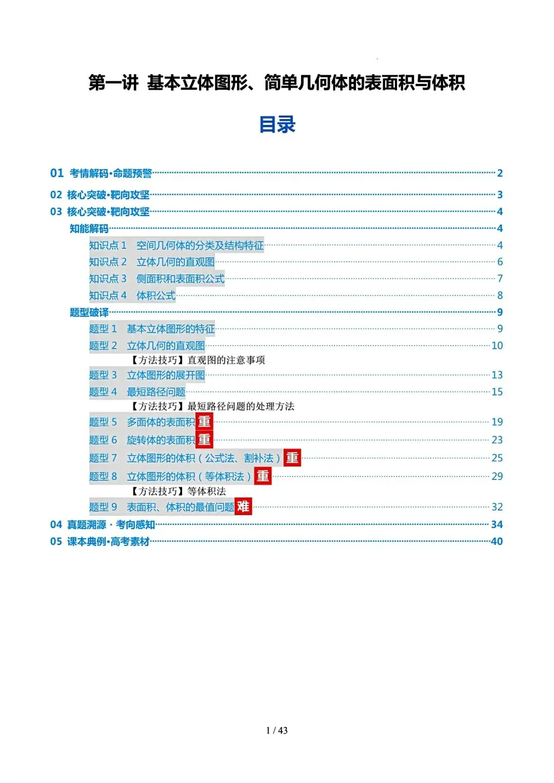 【高中数学】高三立体几何复习资料