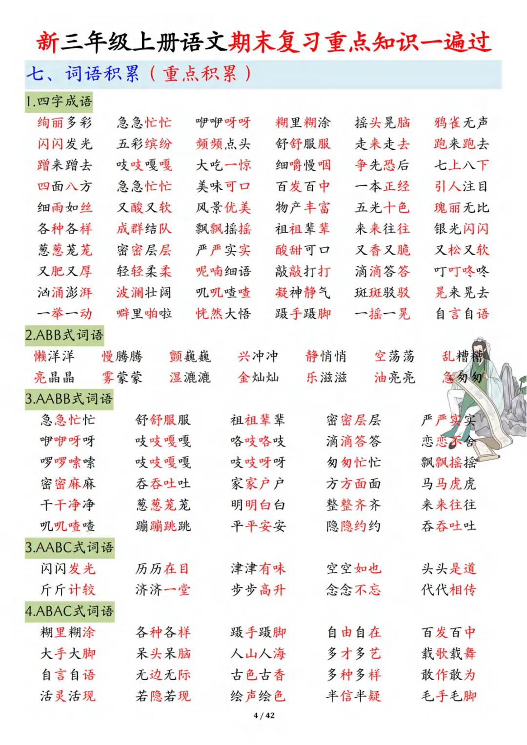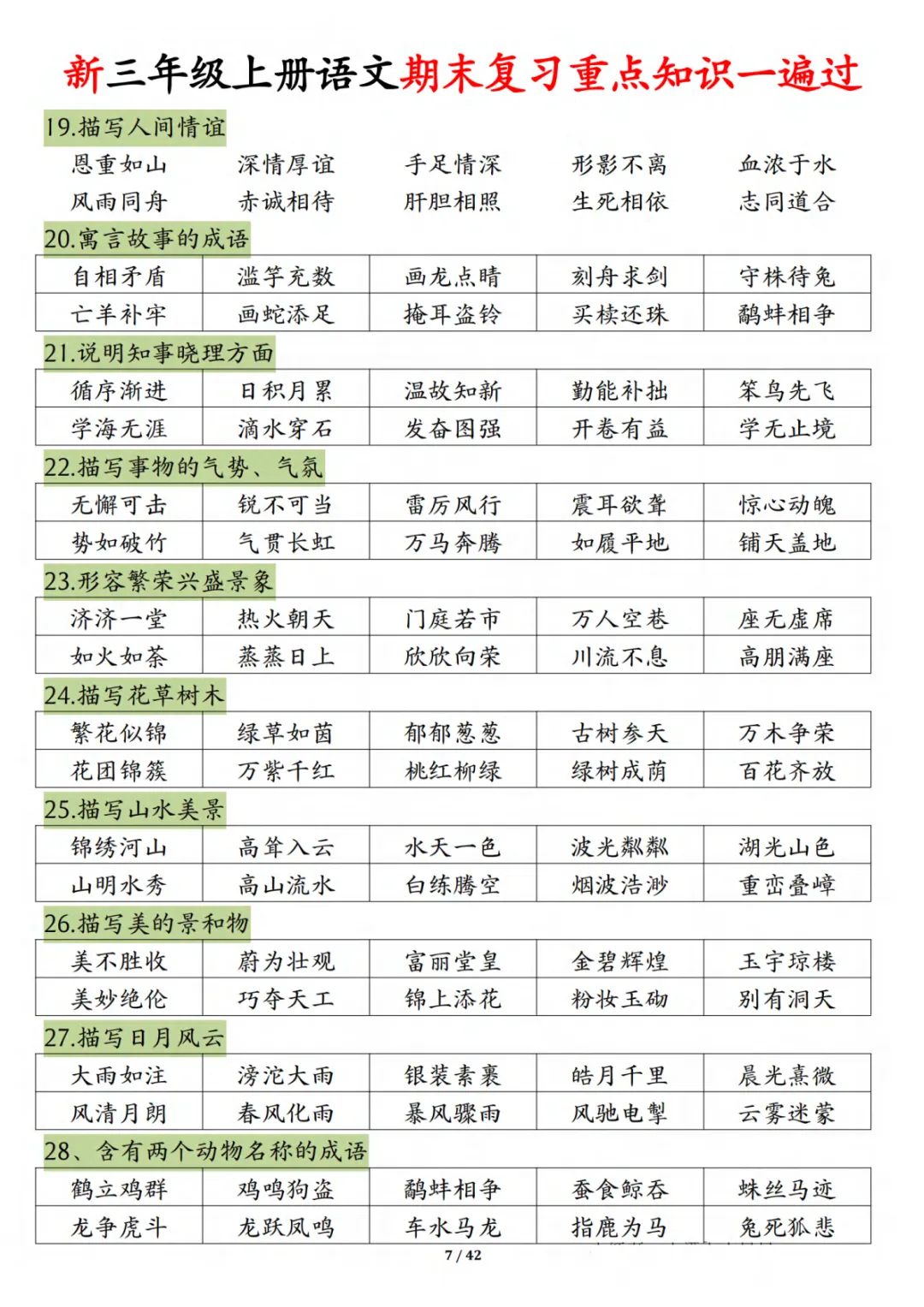 三年级上册通用版语文期末复习重点知识一遍过(十三考点汇总),期末冲刺必备