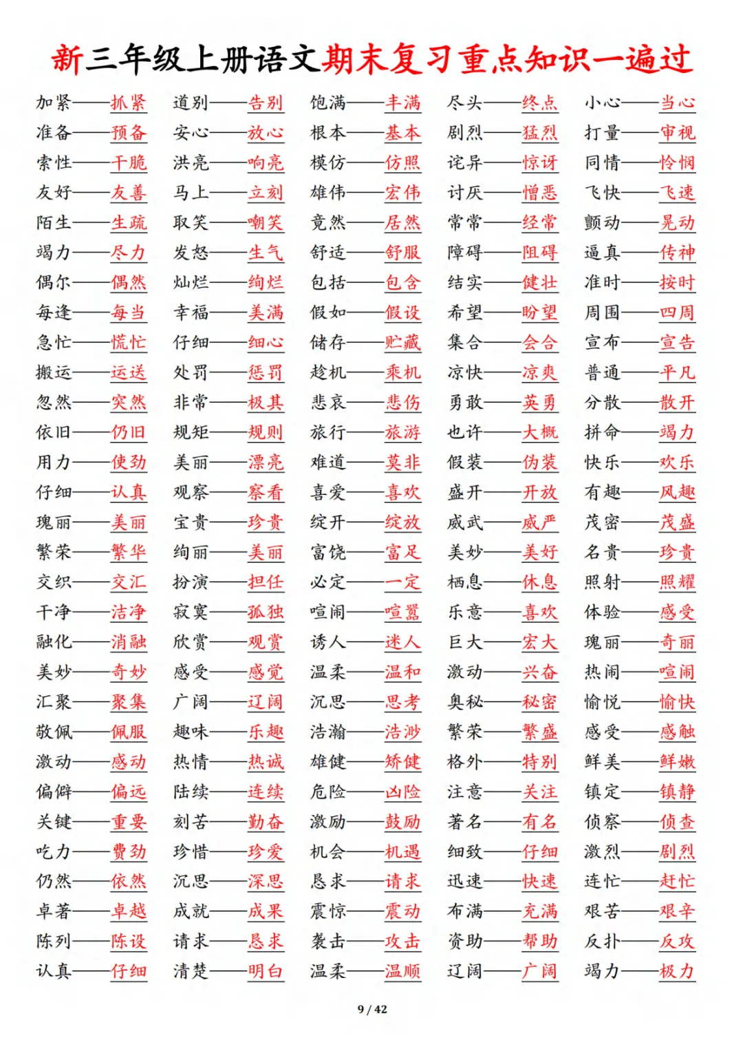 三年级上册通用版语文期末复习重点知识一遍过(十三考点汇总),期末冲刺必备,完整电子版可打印。这是一份精心整理的学习资料,需要的家长抓紧打印出来,让孩子背一背、练一练!