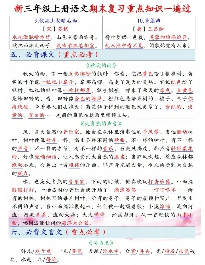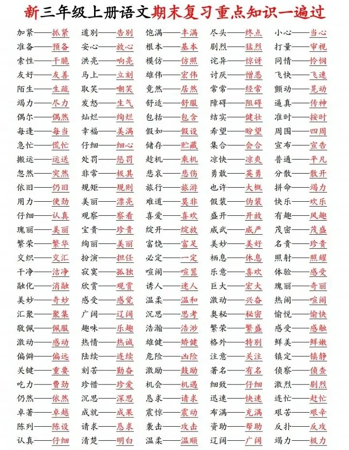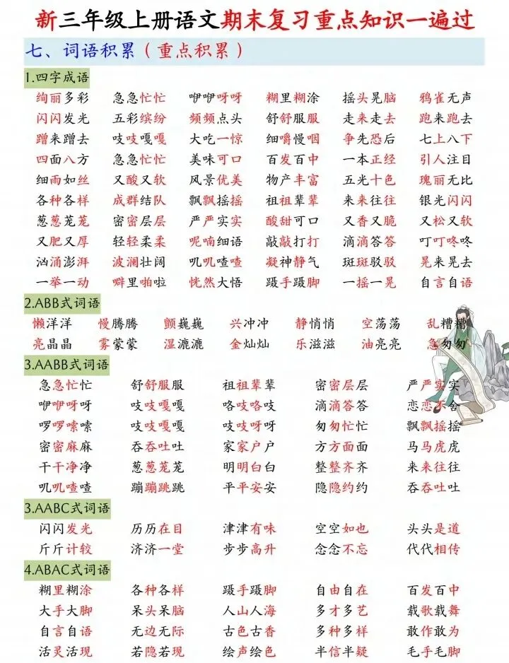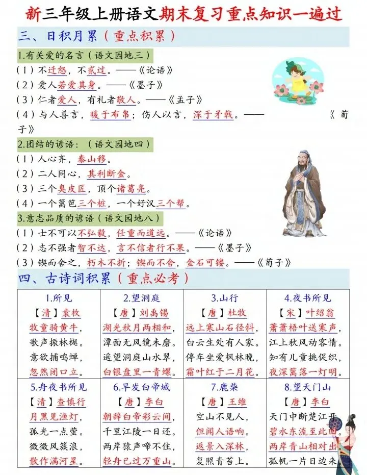 我们已为您整理了三年级上册语文期末复习重点知识汇总(资料超级全面),想给孩子做一下练习的家长可以保存。