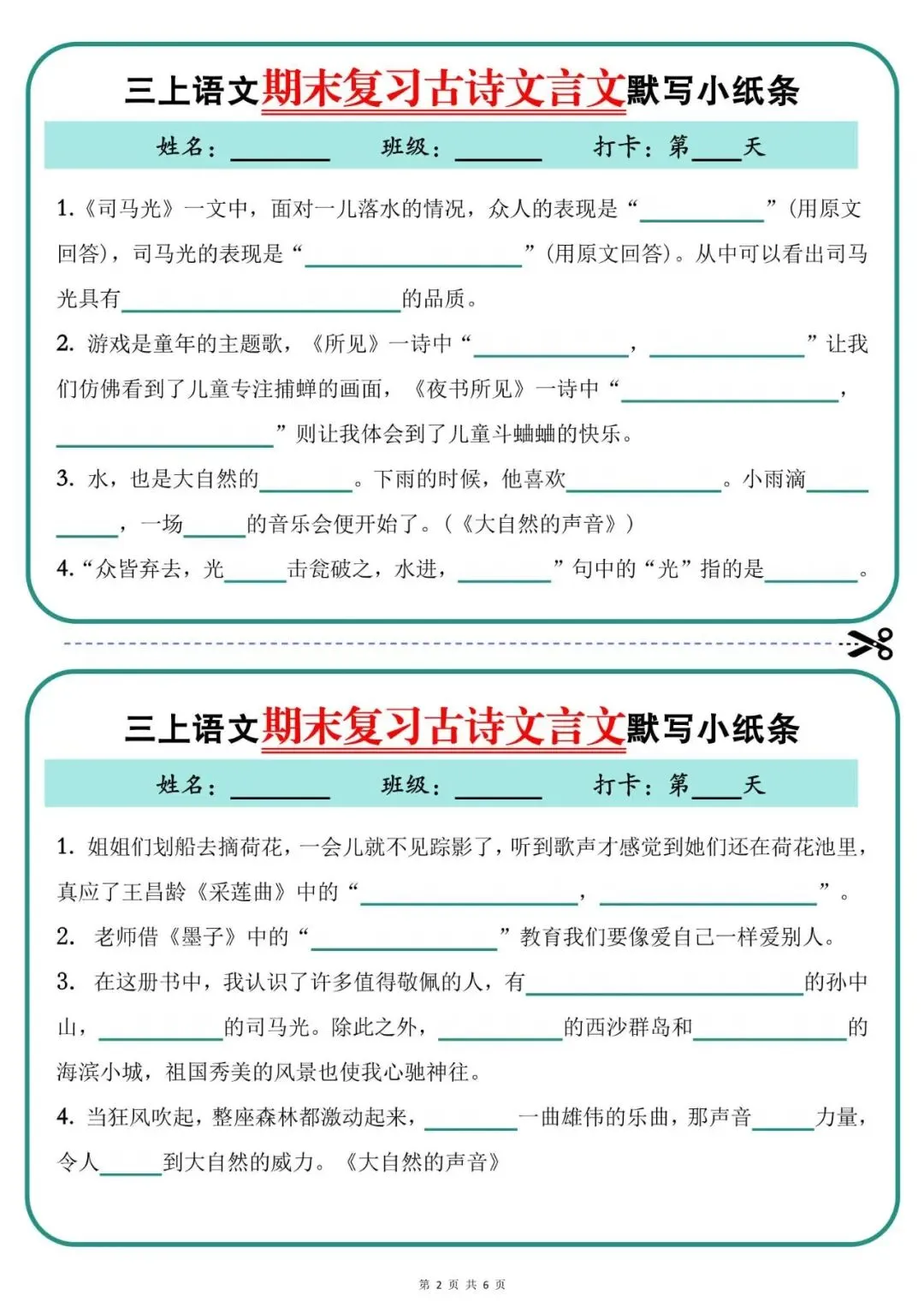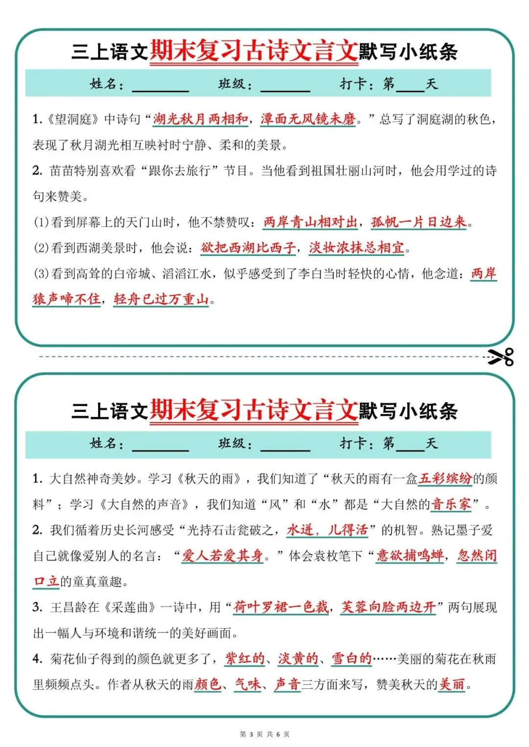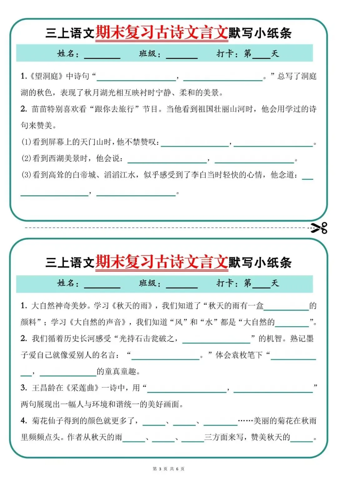 >【资料整理】三年级上册语文期末复习古诗文言文默写小纸条