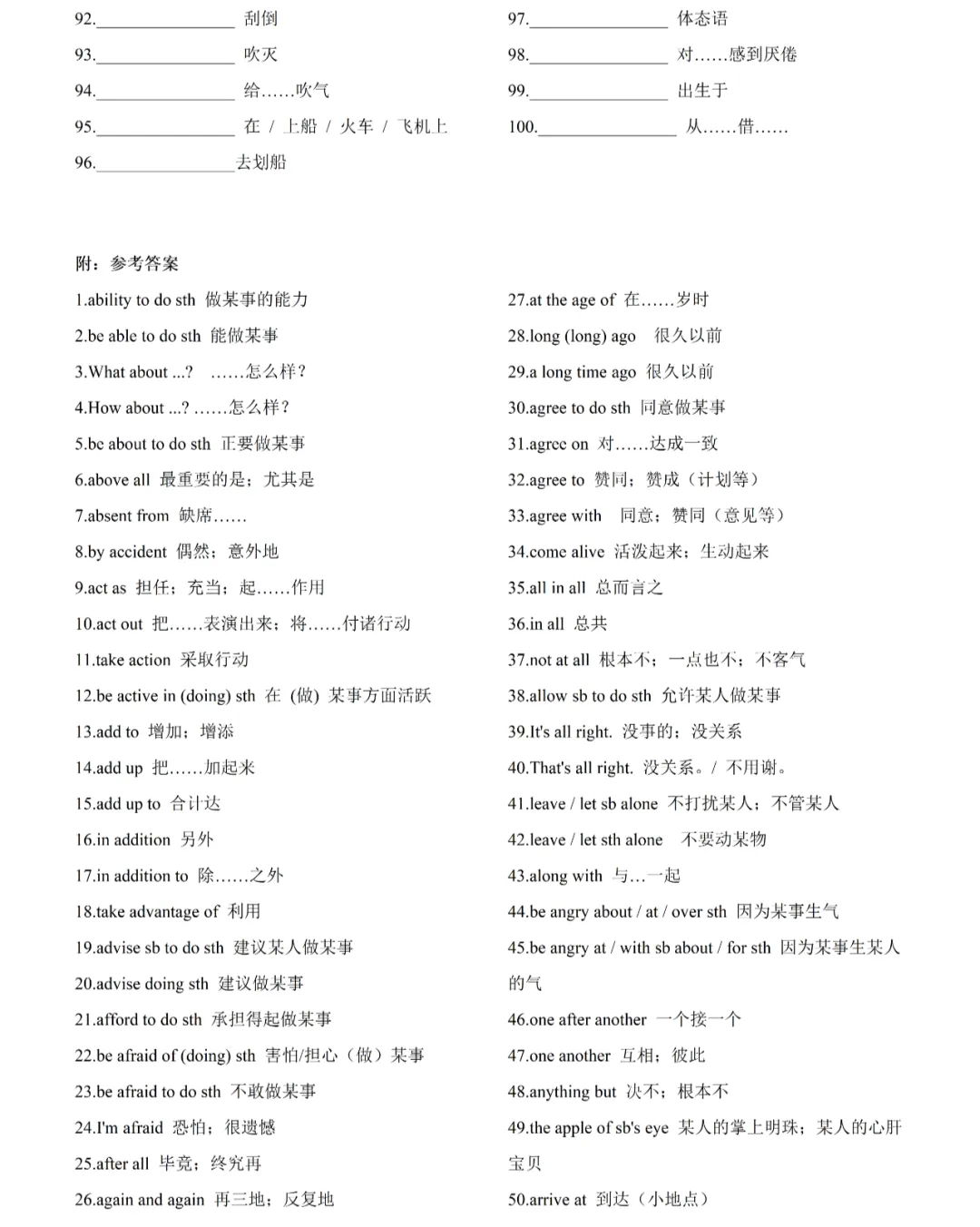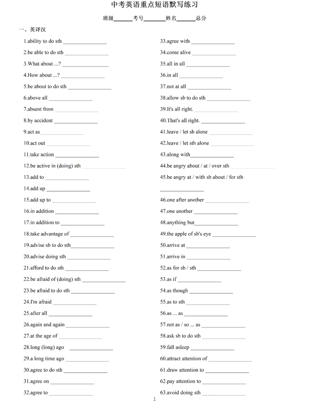 最近,很多老师和学生家长在后台给小编留言,想要中考英语短语默写相关资料。