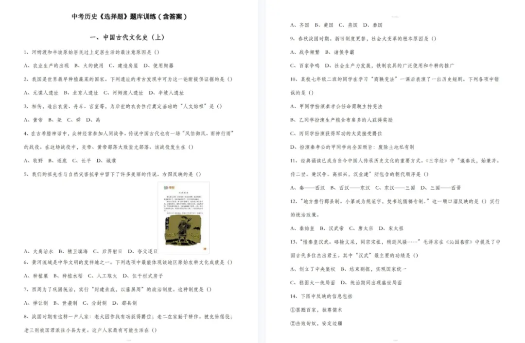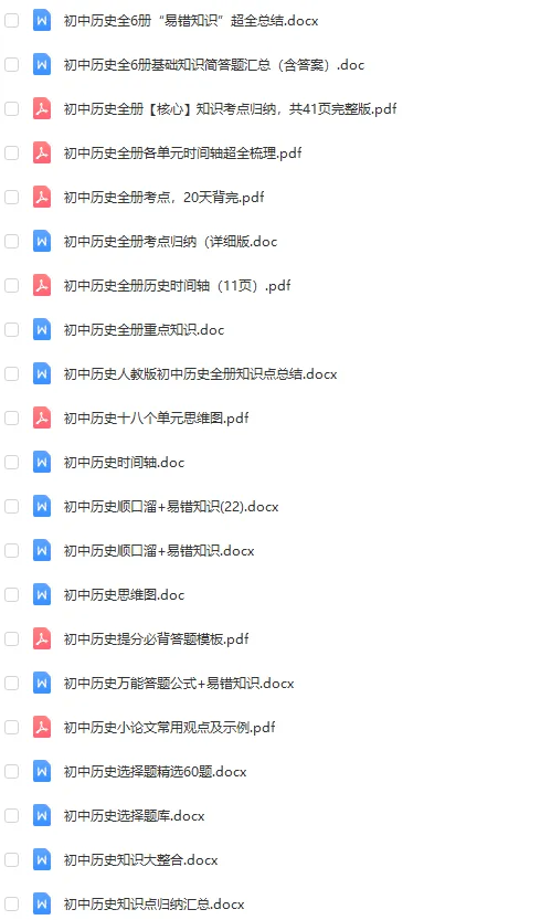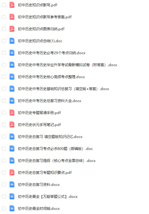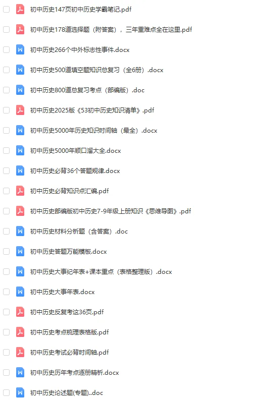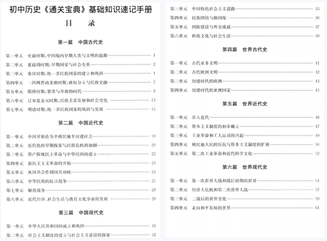 大家好,教习工坊今日分享的是2026中考历史总复习知识汇总必备资料合集,文章末尾有网盘地址可转存下载打印。
