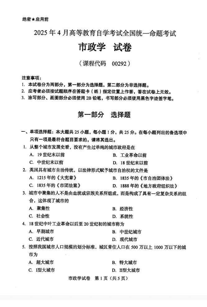 00292《市政学》备考核心是夯实城市治理基础理论,紧扣“基础扎实+职能清晰+实践应用”的备考要求,聚焦城市基础认知、市政主体与职能、城市治理与问题解决三大核心模块,通过“夯实基础—考点突破—实战演练”的节奏,实现理论记忆与市政问题分析能力的同步提升。该科目侧重考查核心概念记忆、市政职能应用、城市治理案例解读等基础内容,兼顾识记与简单逻辑分析能力,具体建议如下: