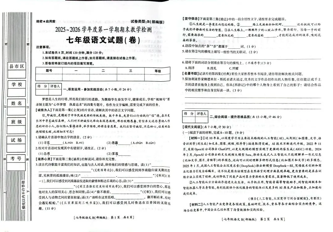通过网盘分享的文件:七年级上学期期末试题及答案.pdf等2个文件