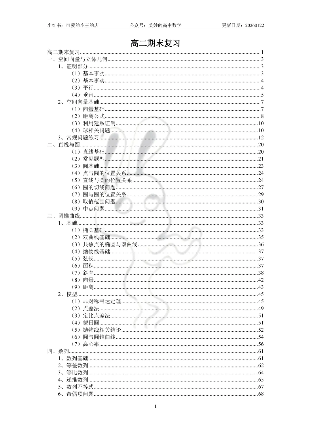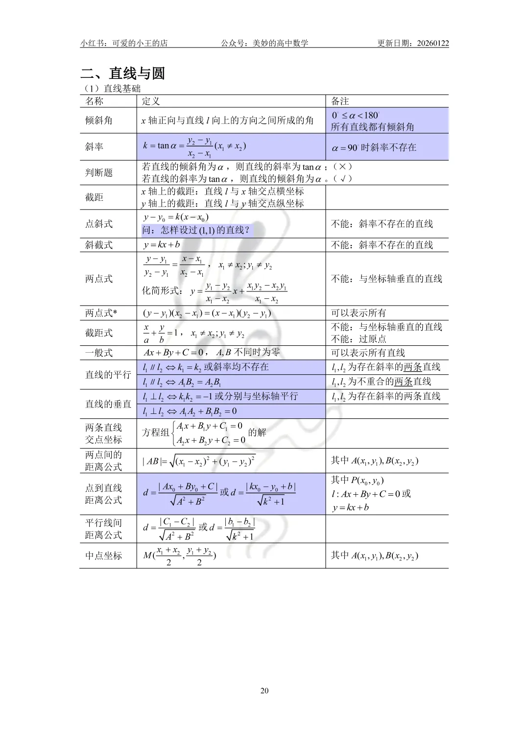 完整版的知识点汇总系列资料立体几何(约300页,含高一下内容),直线与圆、圆锥曲线(共约300页),数列(约150页),仅出售纸质版,电子版不再分享。本份精简版资料共70页。