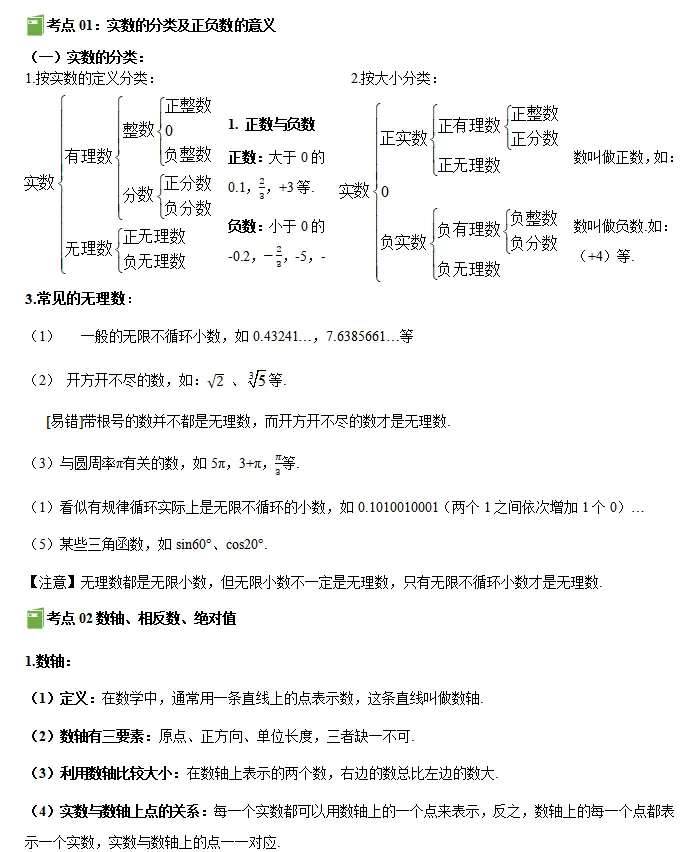 数学|数与式12大考点系统复习资料!(适用于七年级/中考生)