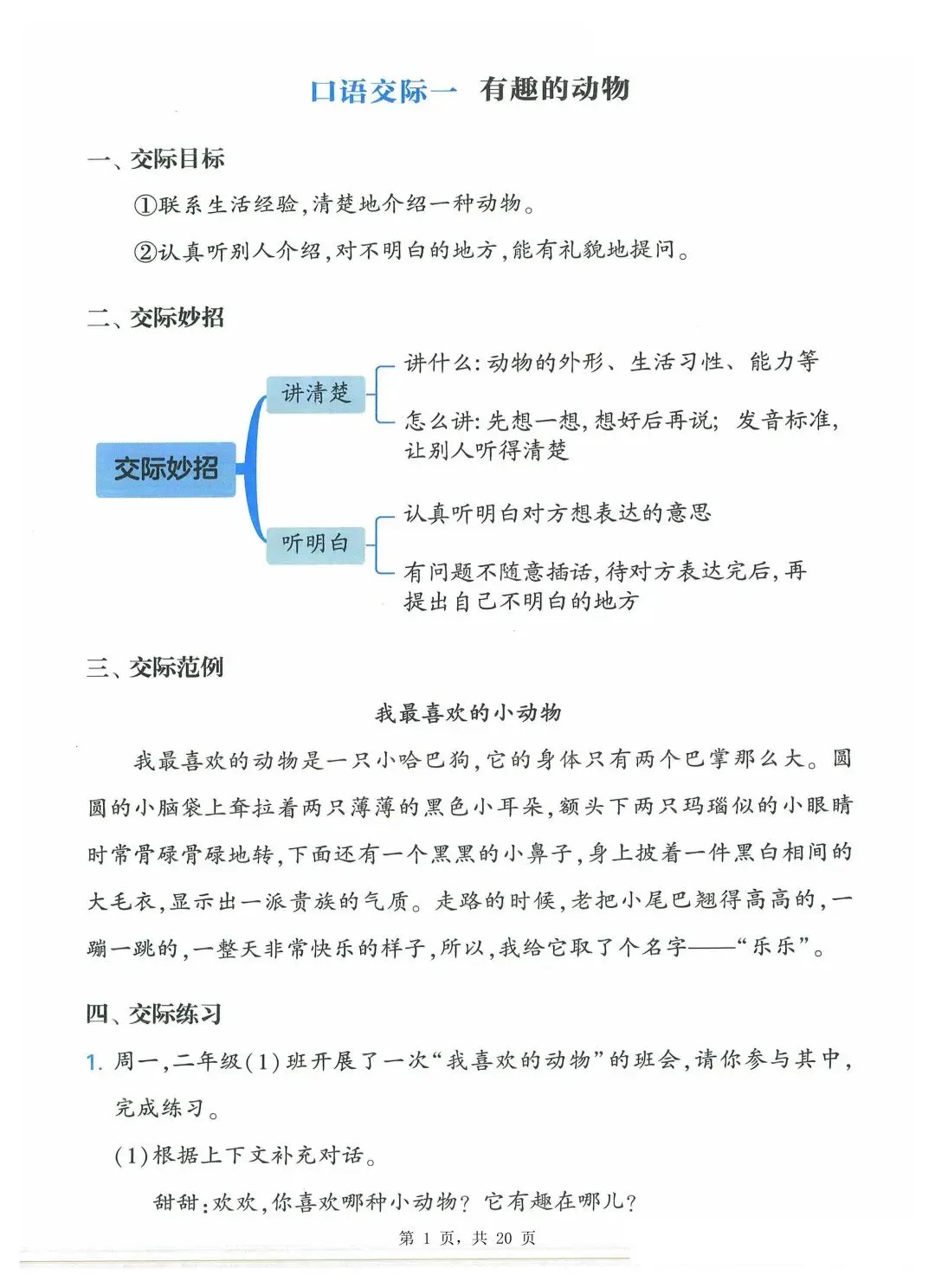 今天我们精心整理了新二年级上册语文复习的口语交际与同步写话提升训练资料附范文示例,总共20页,电子版支持下载打印。这份资料实用性超强,精准聚焦新二上语文口语交际板块以及写话提升训练,将各类口语交际场景和写话主题清晰分类呈现,范文示例丰富多样、生动精彩,能为孩子提供绝佳的参考借鉴。家长可以深度参与监督,和孩子一起规划口语交际练习与写话训练任务。好好利用这份资料,能让孩子在口语表达上更加流畅自信,在写话创作中文思泉涌,有效提升语文综合素养,助力孩子扎实筑牢语文基础,轻松攻克口语与写话难关。欢迎有需求的家长赶紧收藏!