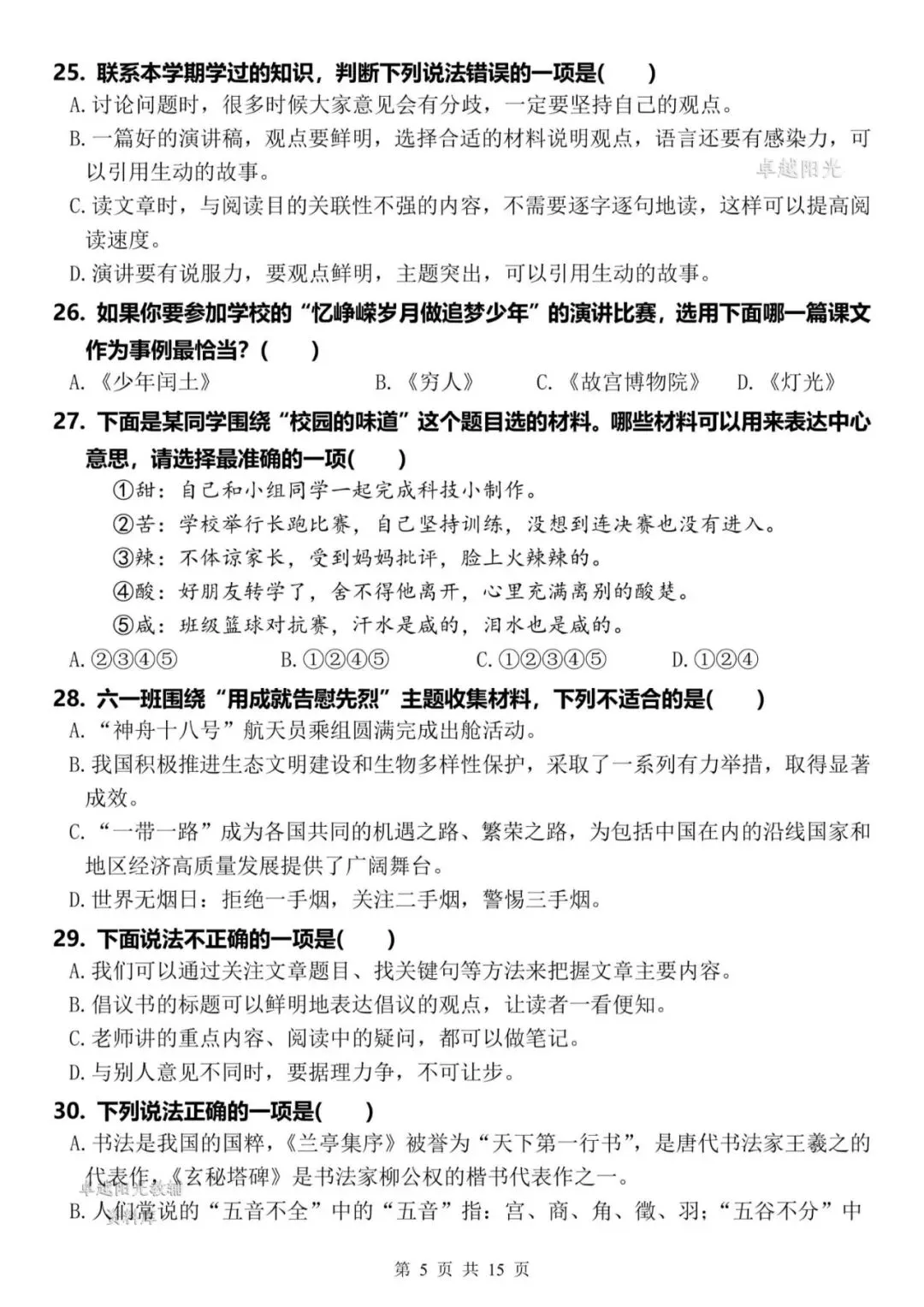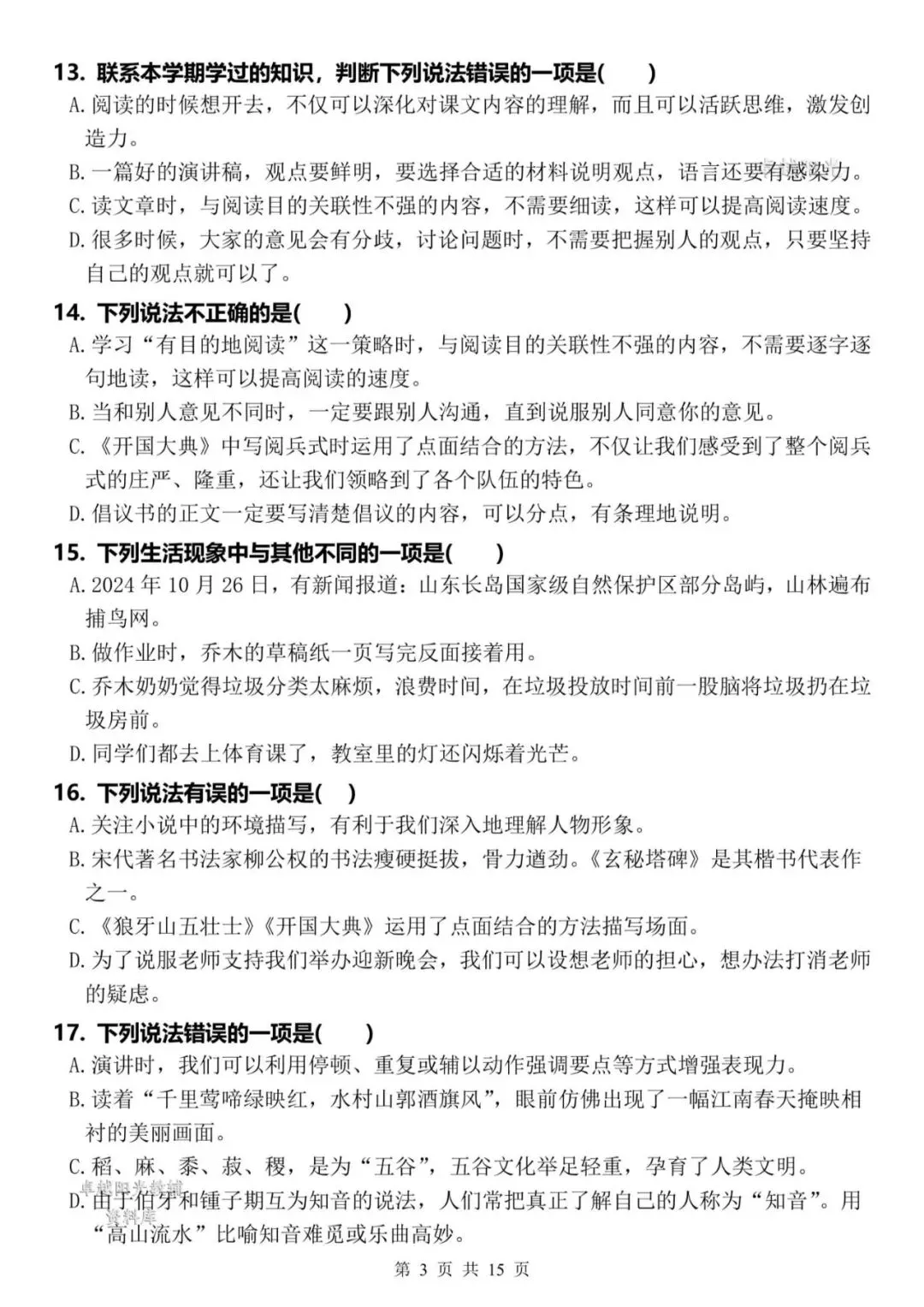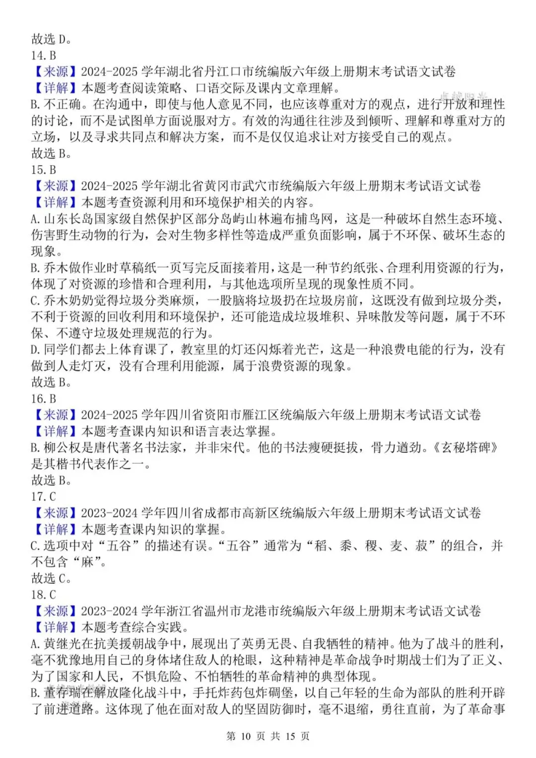 【资料整理】六年级上册语文期末复习8类高频易错选择题:《语文园地与口语交际》35道(15页)
