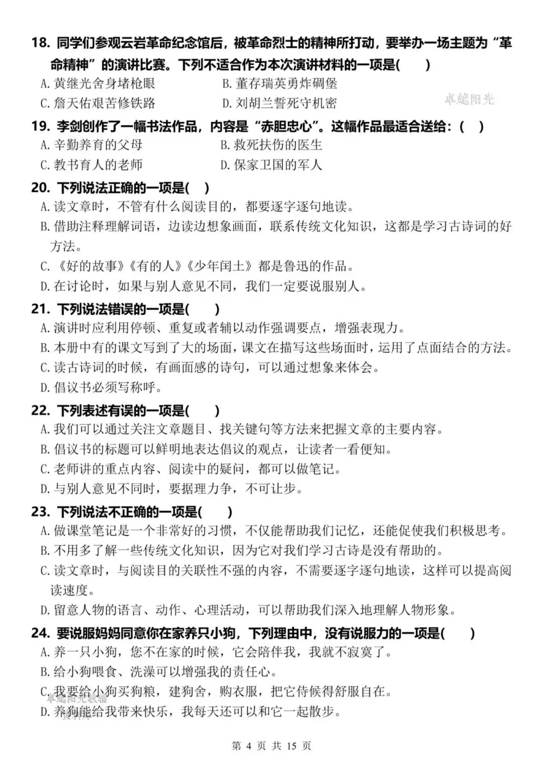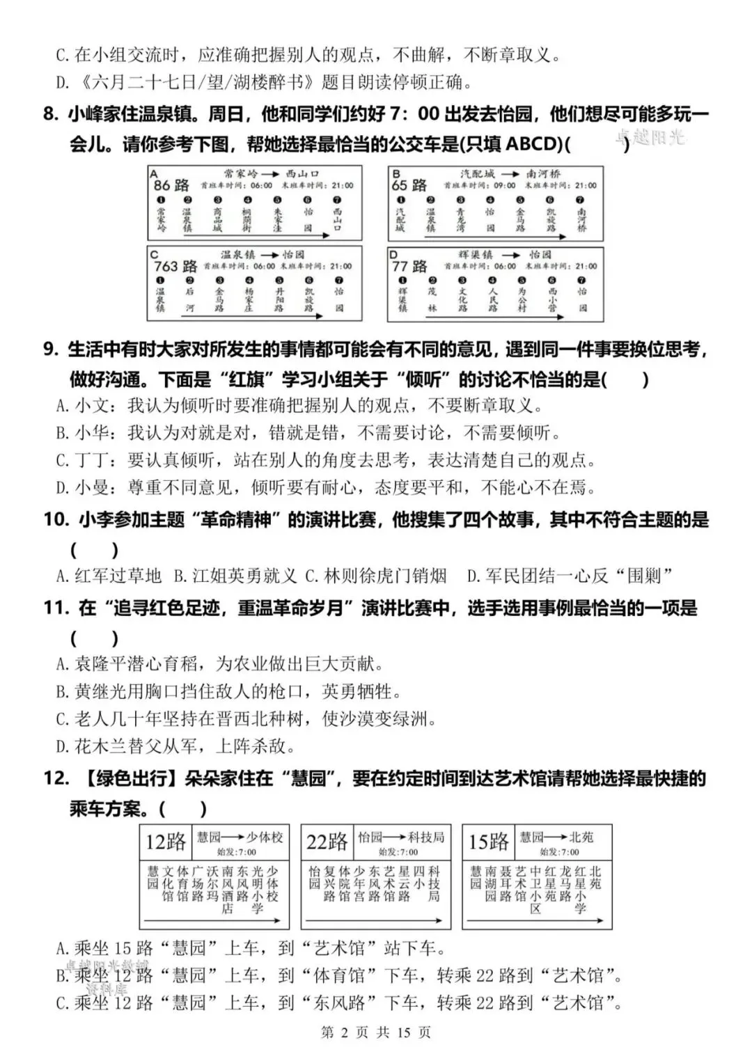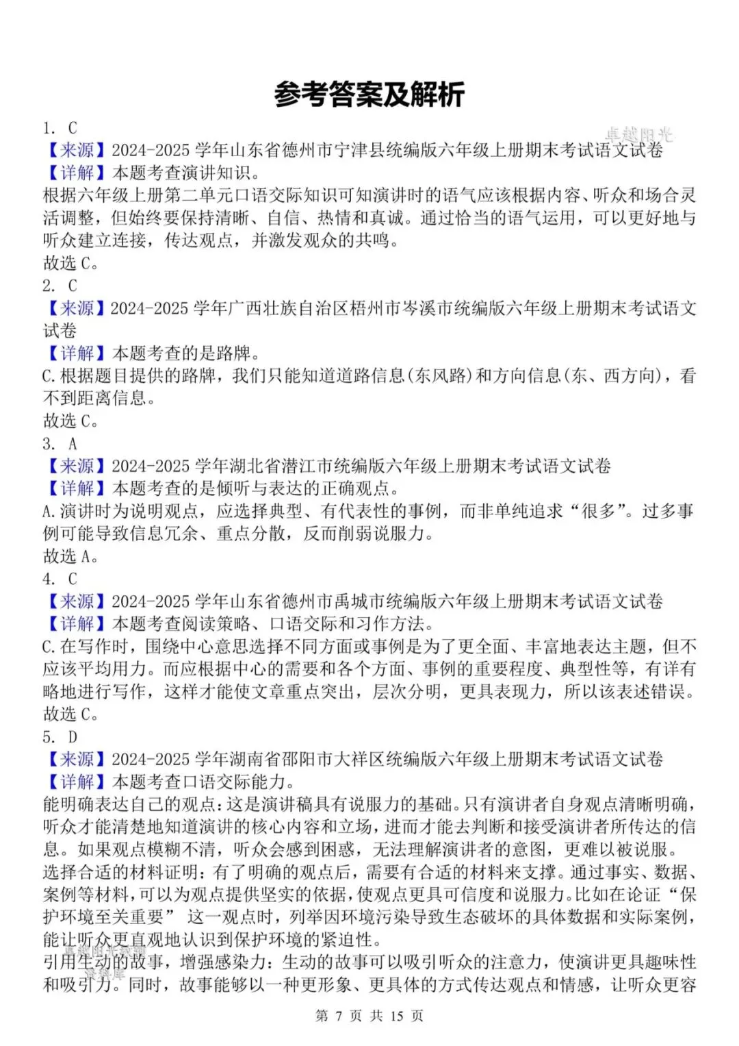 【资料整理】六年级上册语文期末复习8类高频易错选择题:《语文园地与口语交际》35道(15页)