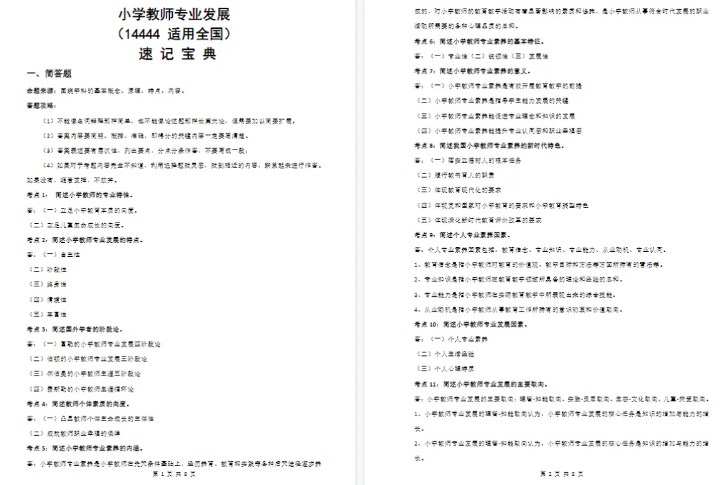 以上就是本次分享的14444《小学教师专业发展》复习资料,由于篇幅原因,只做部分内容展示。
