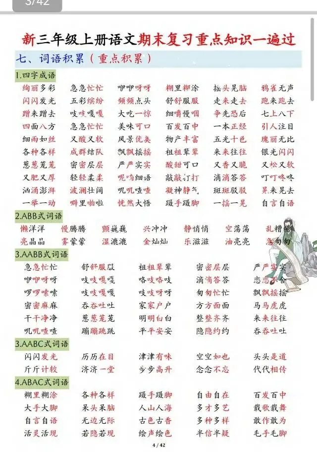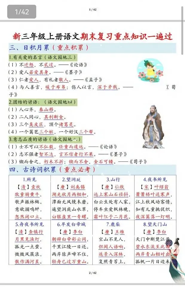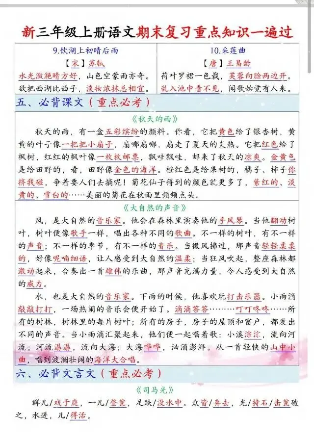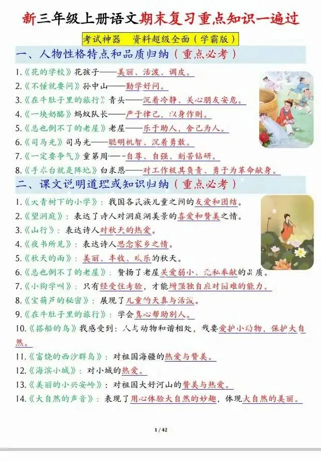 🔥三年级上册语文期末冲刺🔥这份复习资料太全了! 从古诗、名言到词语积累,从课文重点每一页都是老师划的高频考点,孩子背完直接拿捏期末考! 家长们别等了,现在打印出来每天练,考试少丢分,寒假更轻松💪