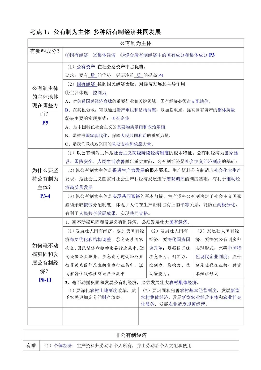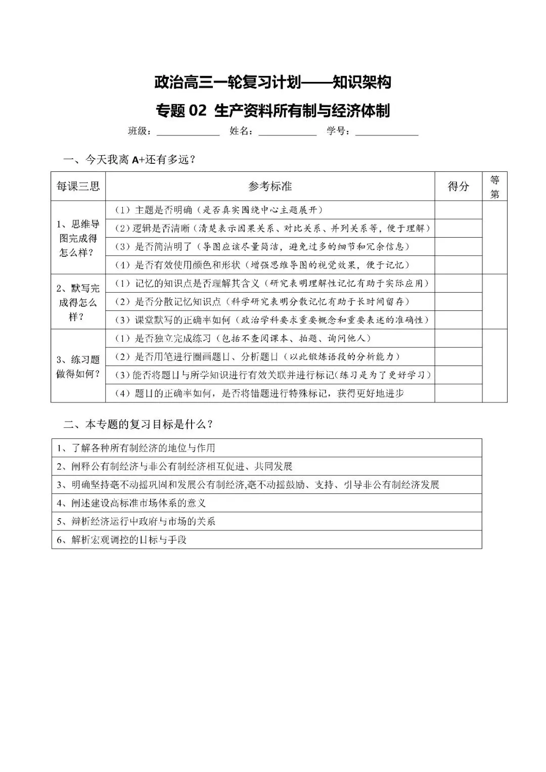 >政治高三一轮复习计划:专题02 生产资料所有制与经济体制 知识建构