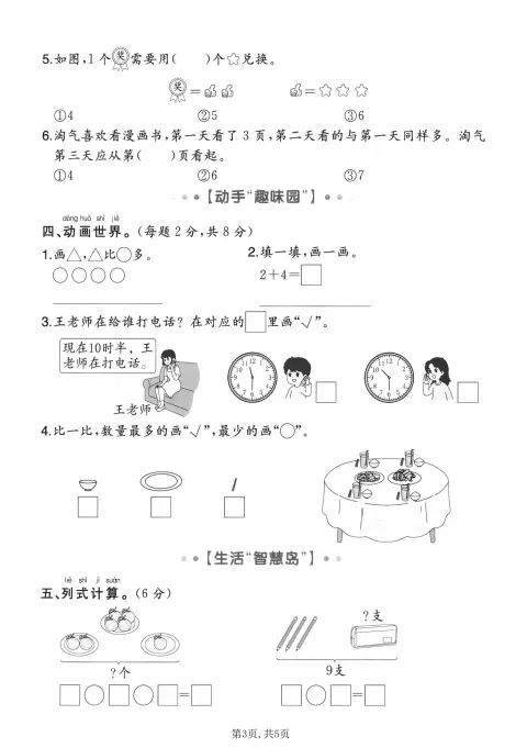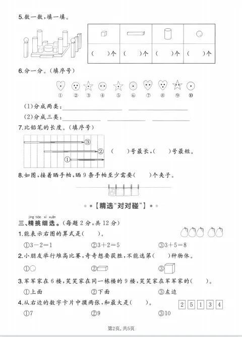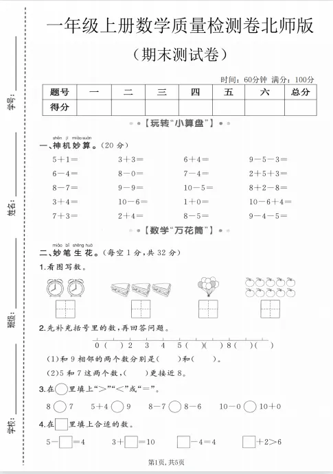 北师版小学数学一年级上册期末复习资料,分享给有需要的家长或教师们!