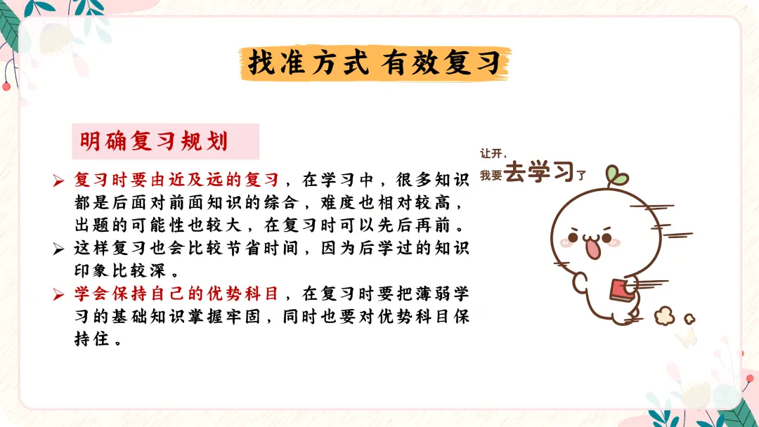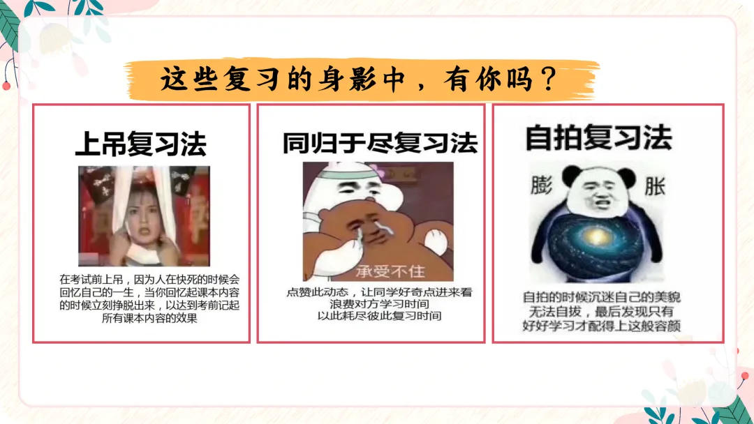 刚才给大家介绍的这些复习方法,都是一些玩笑,大家切勿模仿。复习是一件严肃的事情,我们要认真对待,找到适合自己的复习方法,才能在考试中取得好成绩。