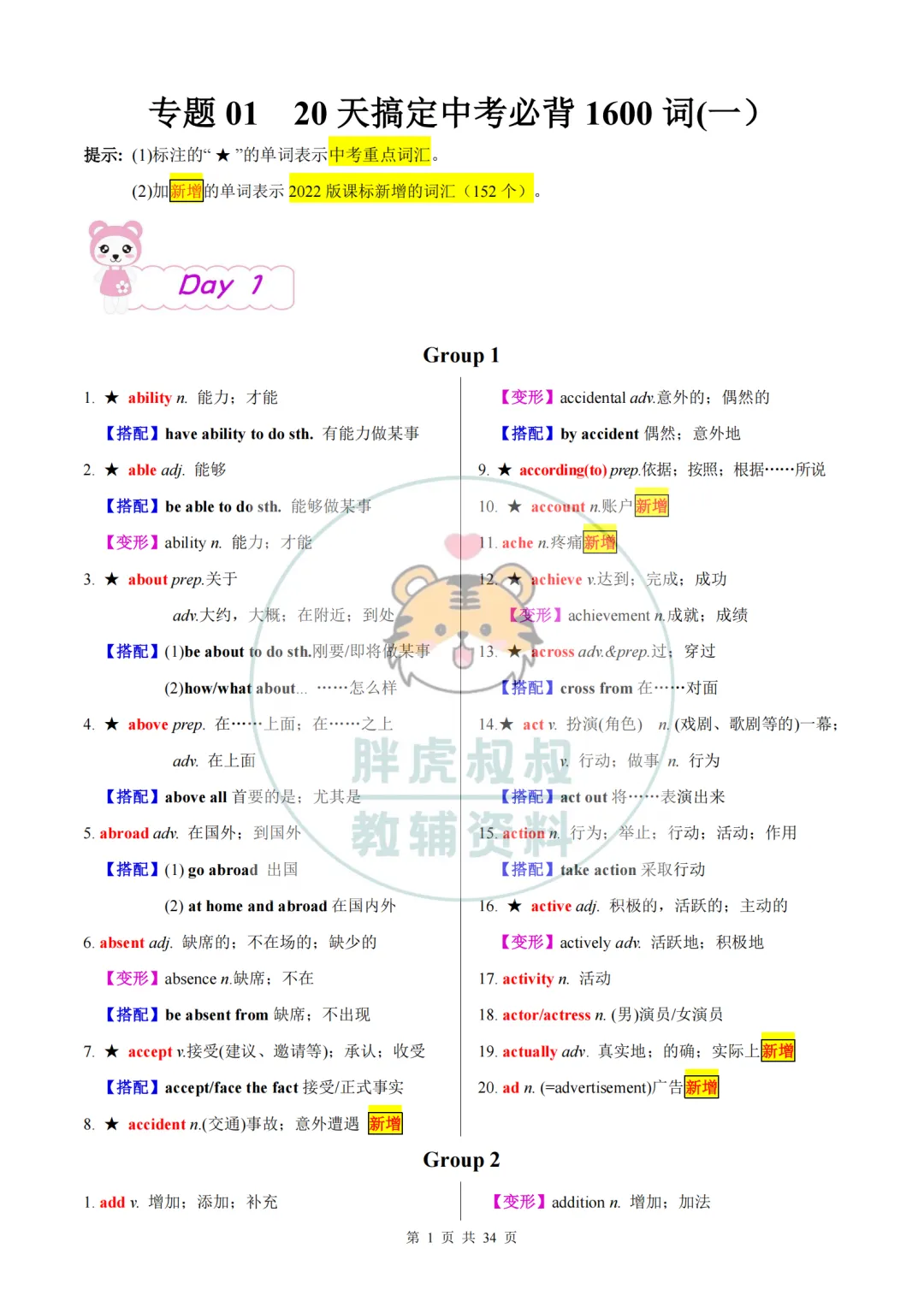 今天给大家准备好了,2026中考英语复习清单专题01:20天搞定中考必背1600词(一)。建议分享到班级群/年级群,让家长打印出来,帮助孩子学习!