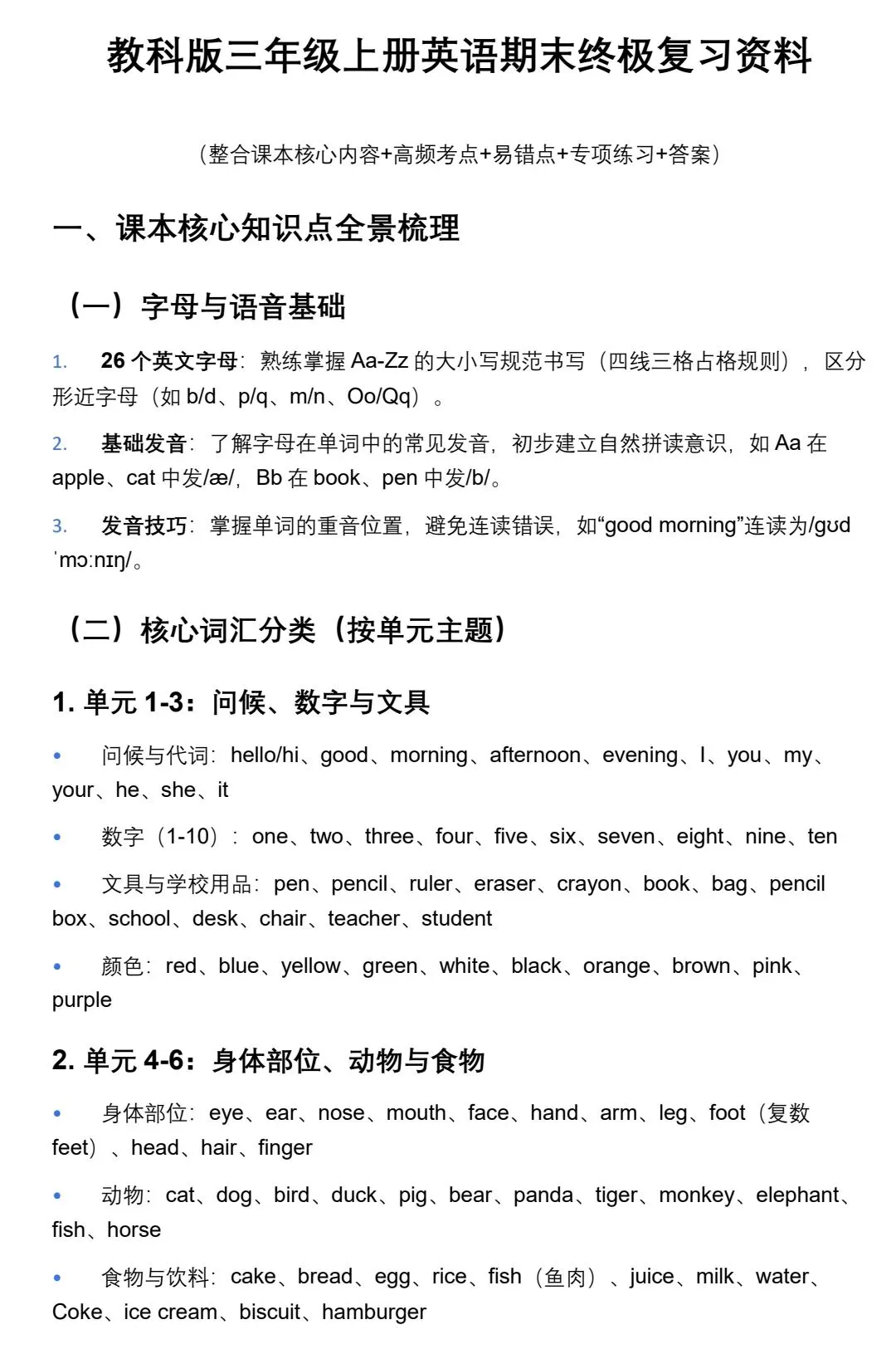 今天铠爸要分享的是教科版三年级上册英语期末终极复习包。